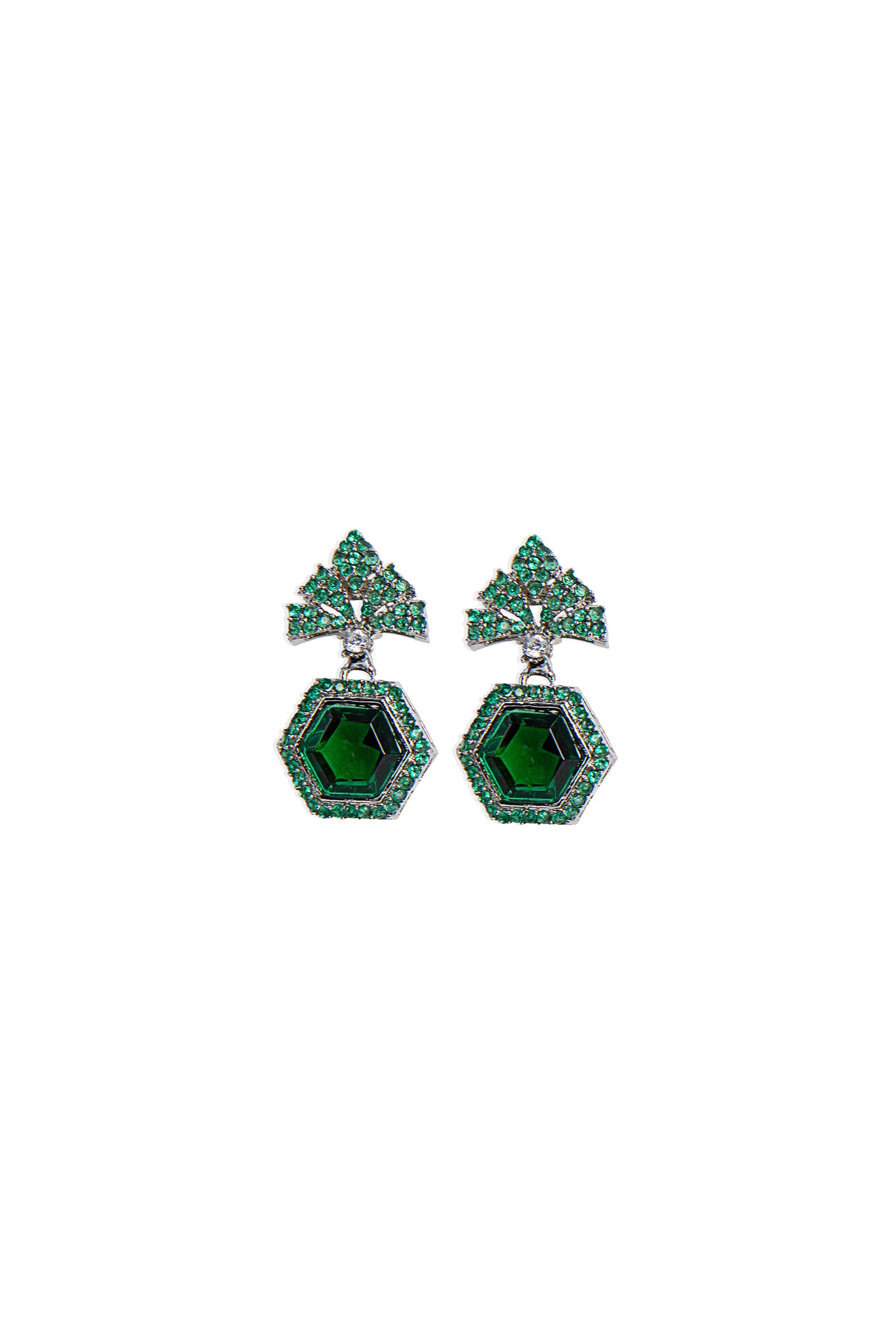 Materials: Zircons Color: Green Tourmaline Metal: Alloy Finish: Silver Back Pin: Sterling Silver Stud Product Care: Wipe Clean