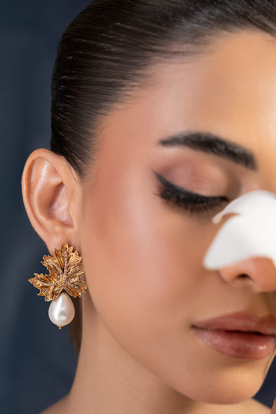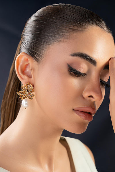 These contemporary studs, that are adorned with sparkling white zircons and delicately capped by a glossy white pearl that sways gently while hanging, are the epitome of grace. A royal declaration of grace and beauty, designed to add understated poetry and sophisticated appeal to your festive occasions.