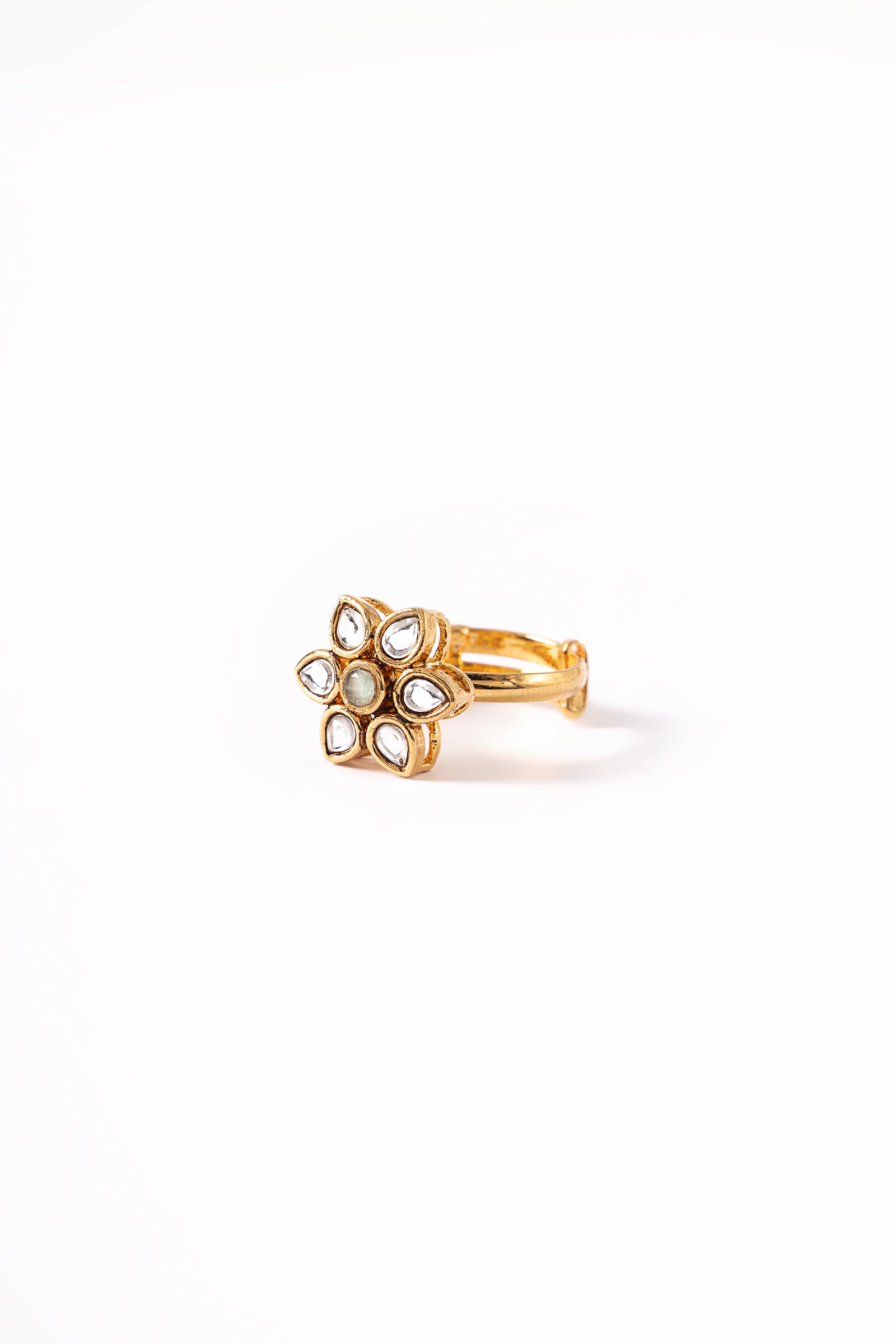 Finish: 21K Gold Plated Back Pin: Sterling Silver Stud Ring Size: Adjustable Product Care: Wipe Clean