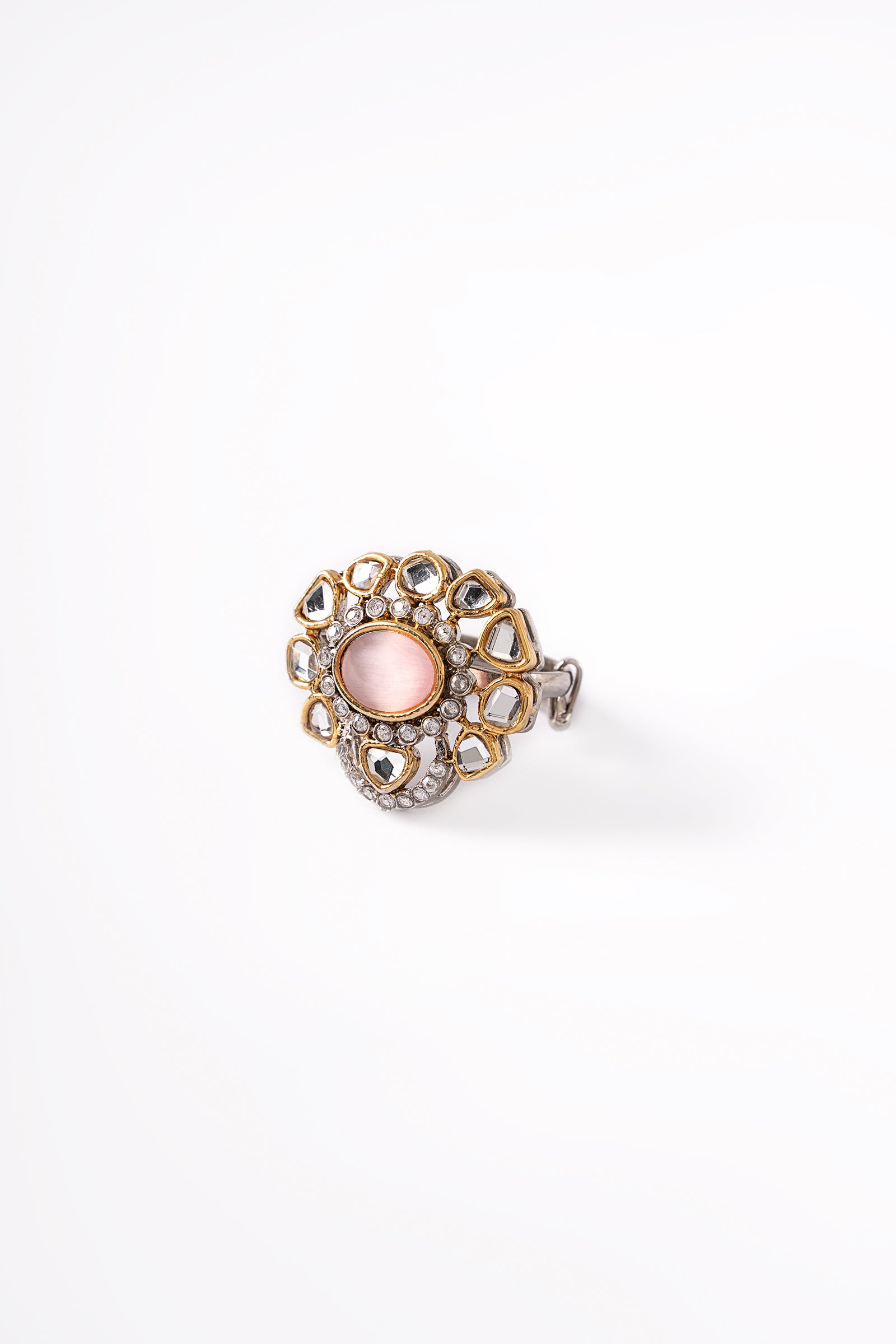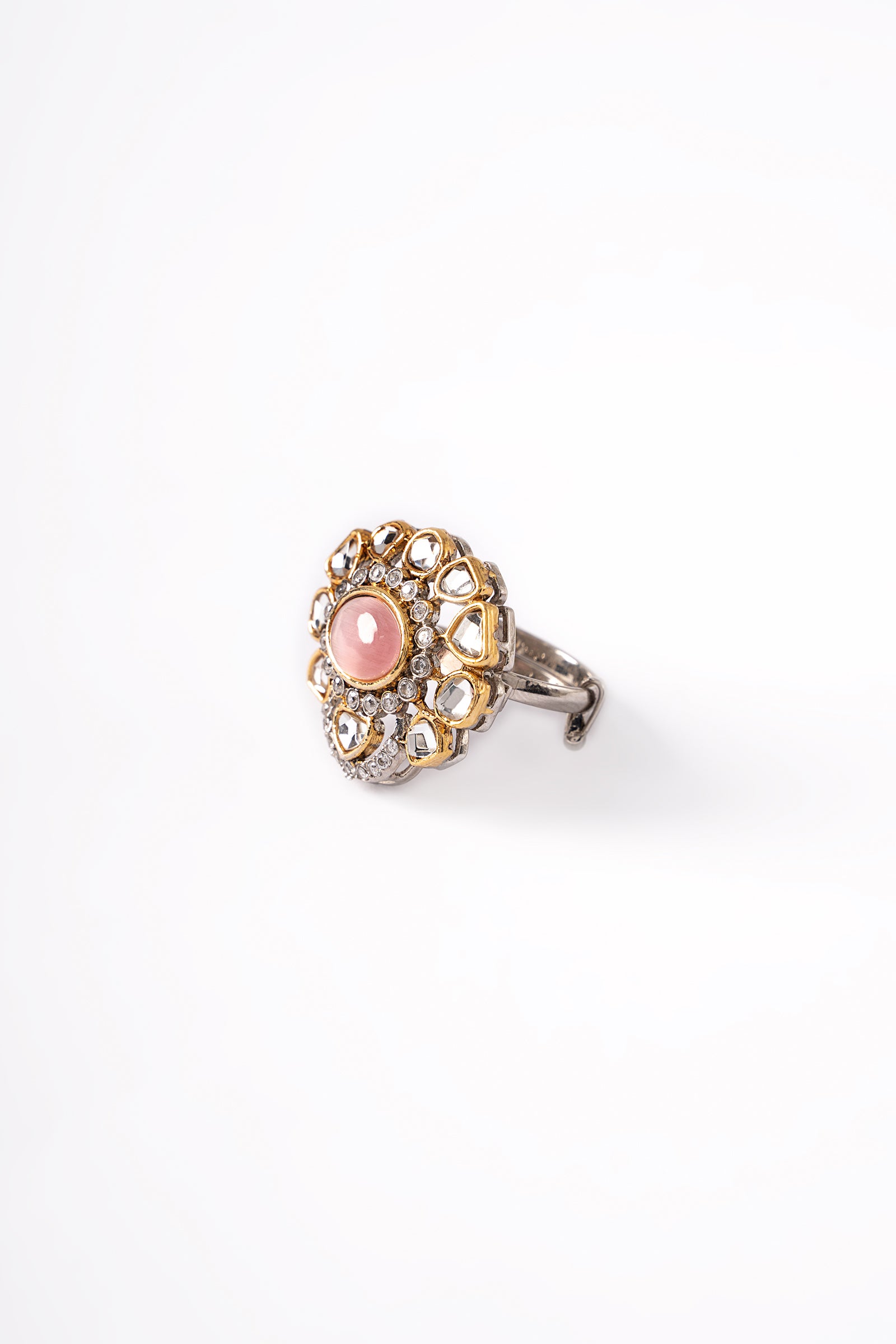 Finish: Gangajamni (21K Gold & Silver Plated) Back Pin: Sterling Silver Stud Ring Size: Adjustable Product Care: Wipe Clean