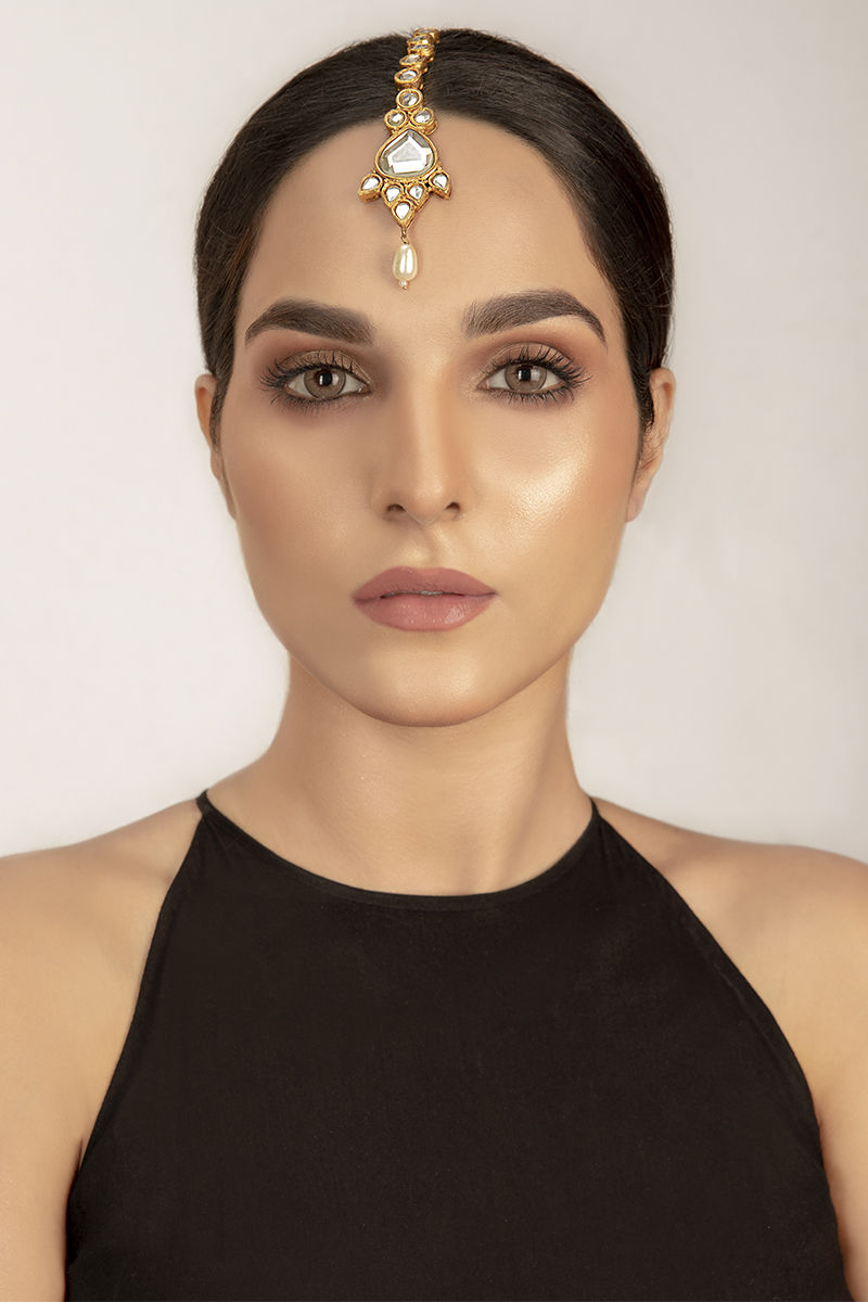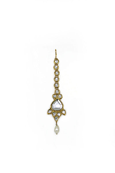 Handmade kundan mang tikka with glass cut stone to give an elegant look.