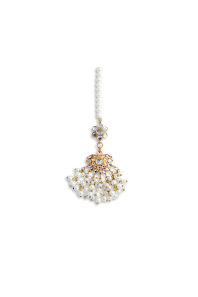 An elegant addition to your kids attire - this traditional kids pearl piroyi handcut glass cutting tikka has been finely designed in 21K gold plating. 21k gold plated Alloy metal Made in pakistan