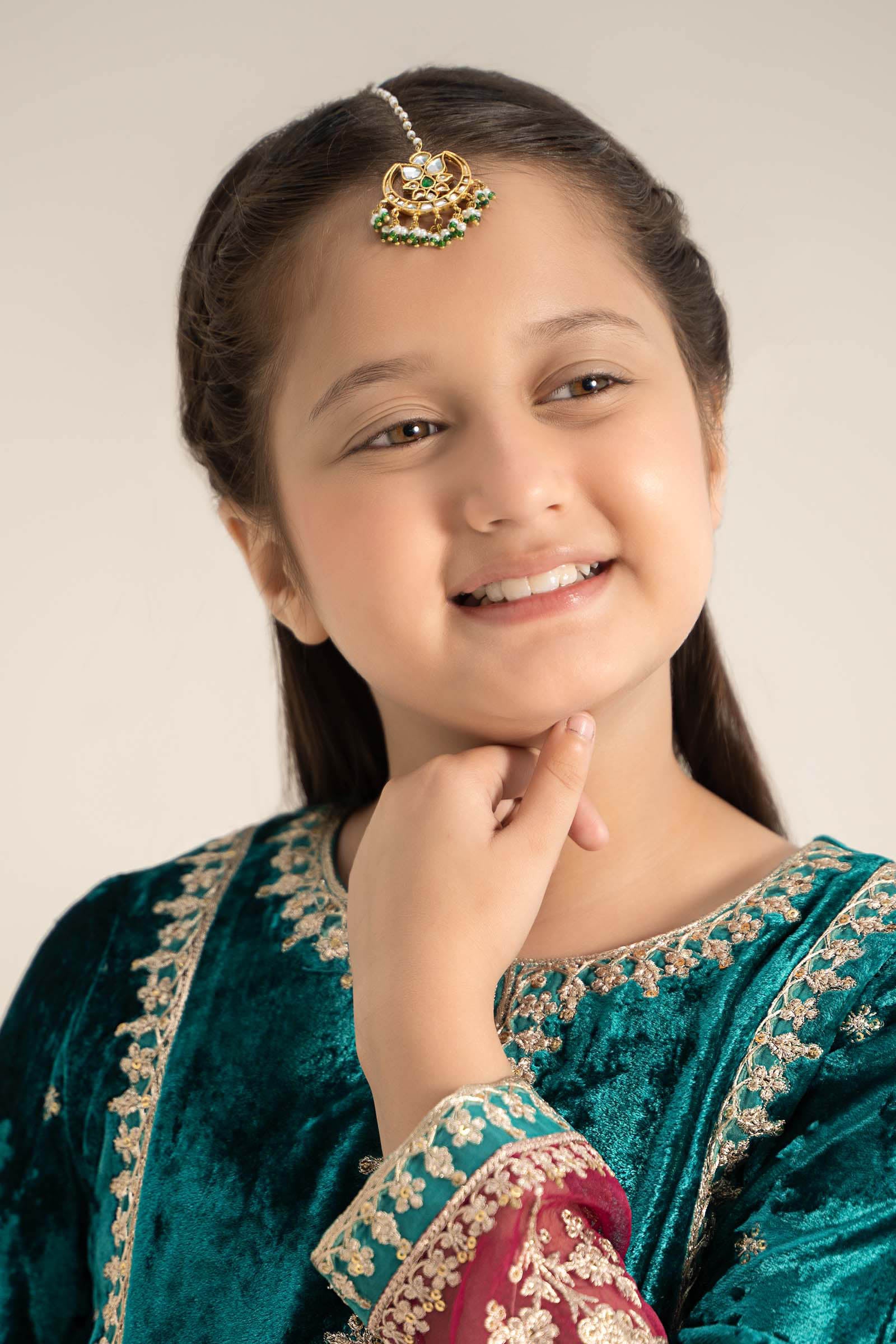 Kid's Tikka Materials: Handcut Glass, Onyx & Pearls Color: Green Onyx & White Metal: Alloy Finish: 21k Gold Plated Product Care: Wipe Clean
