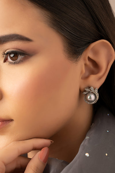 Inspired by nature, our Leaf Studs feature a round grey pearl surrounded by dazzling white zircons meticulously arranged in a leaf design. These earrings exude a timeless elegance, making them a graceful yet minimal choice for any occasion.
