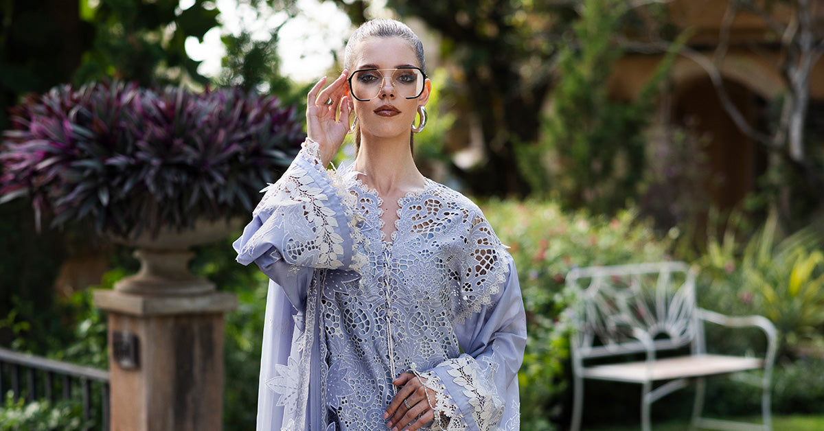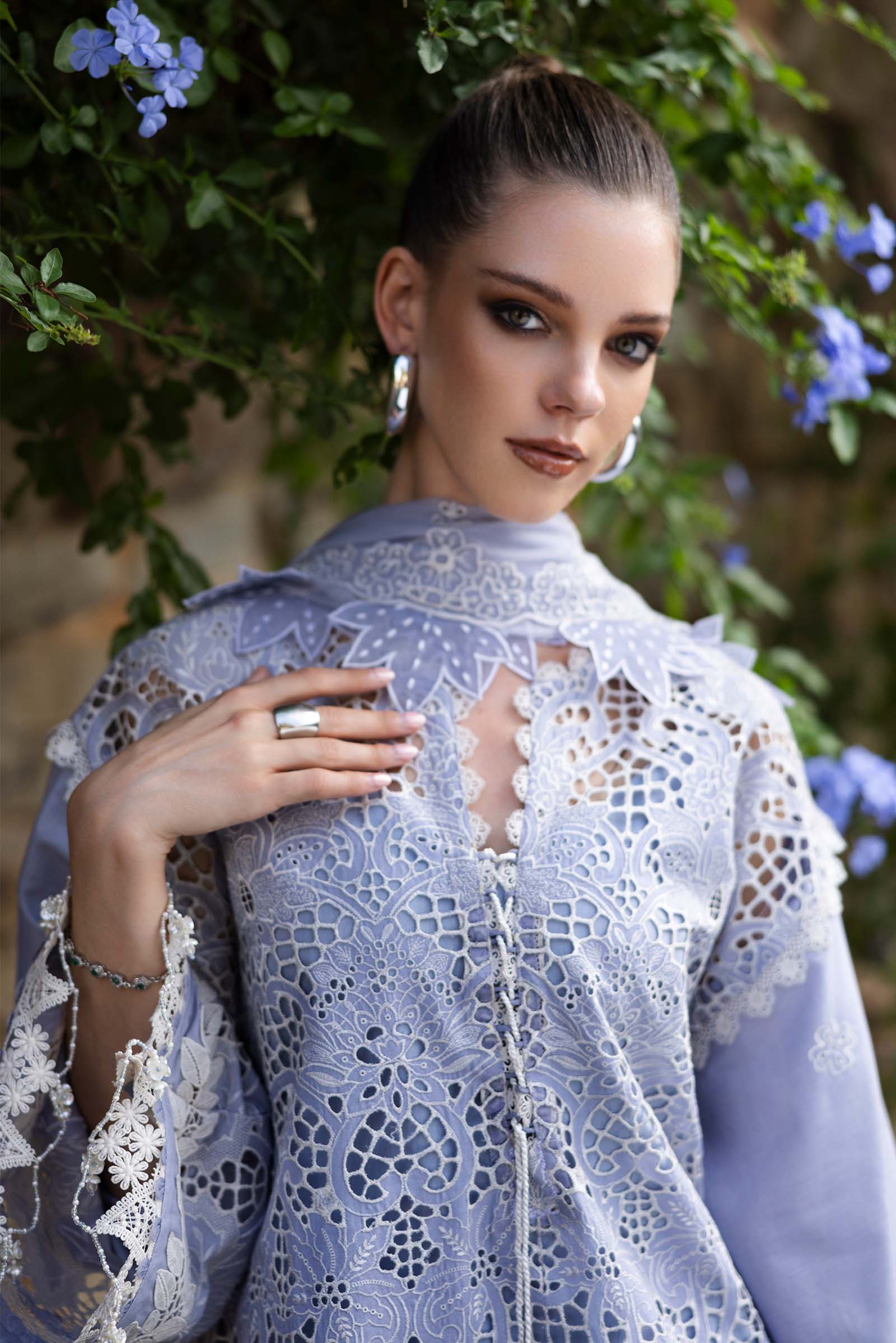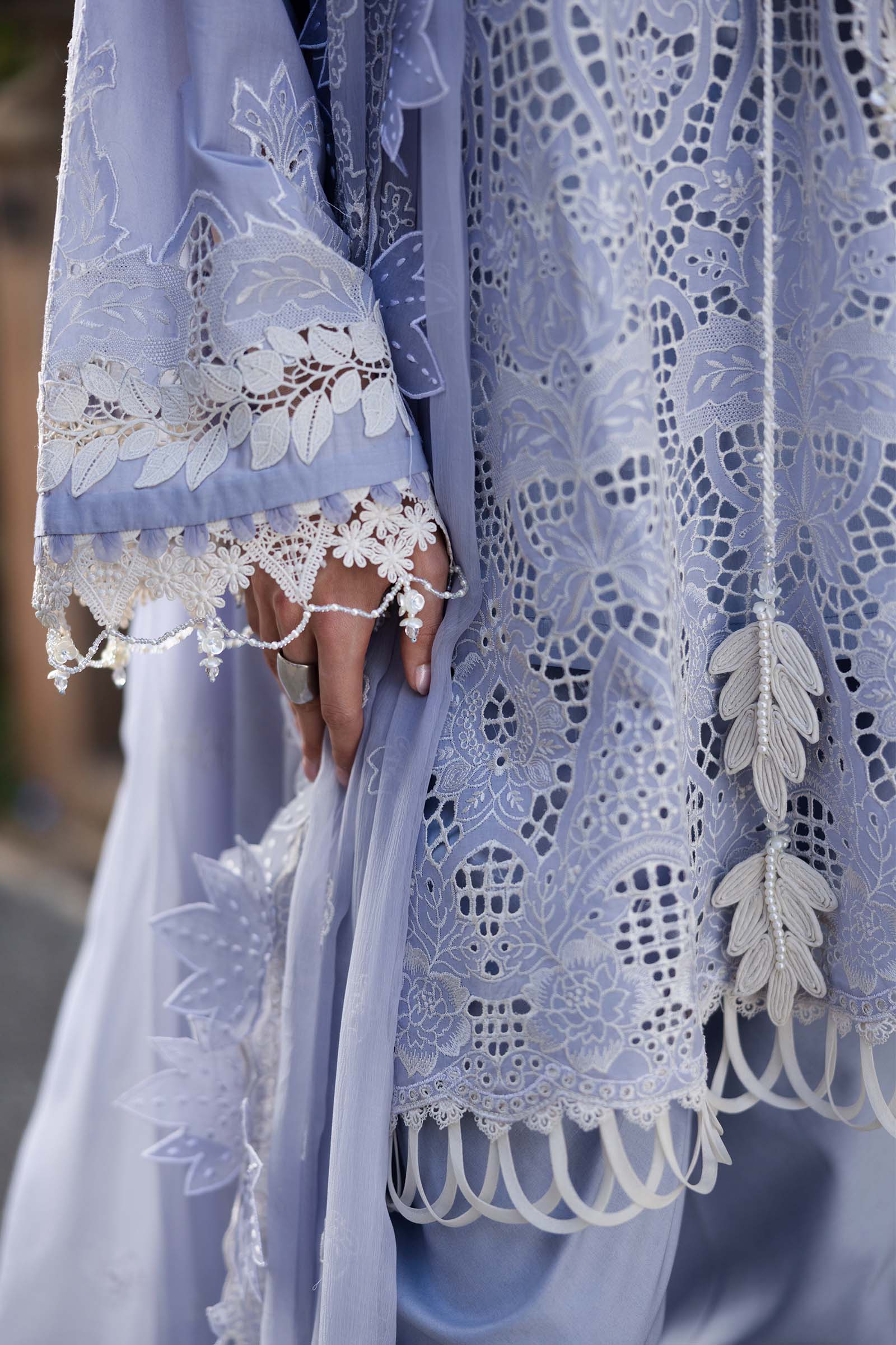 Dupatta: Floral Schiffli Embroidery Spray With Beautiful Scalloped Border