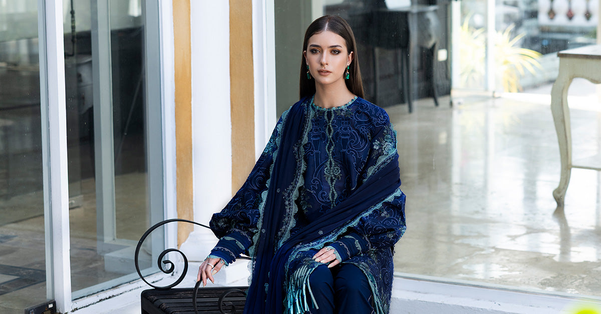 Shirt: Laser & Thread Embroidery Layered With Poly Lawn For A Summer Friendly FeelBack: Multicolor Floral Thread Embroidery SprayDupatta: Multicolor Floral In Thread Embroidery Spray With Scalloped BorderShirt & Back Fabric: LawnDupatta Fabric: ChiffonColor: Cobalt Blue