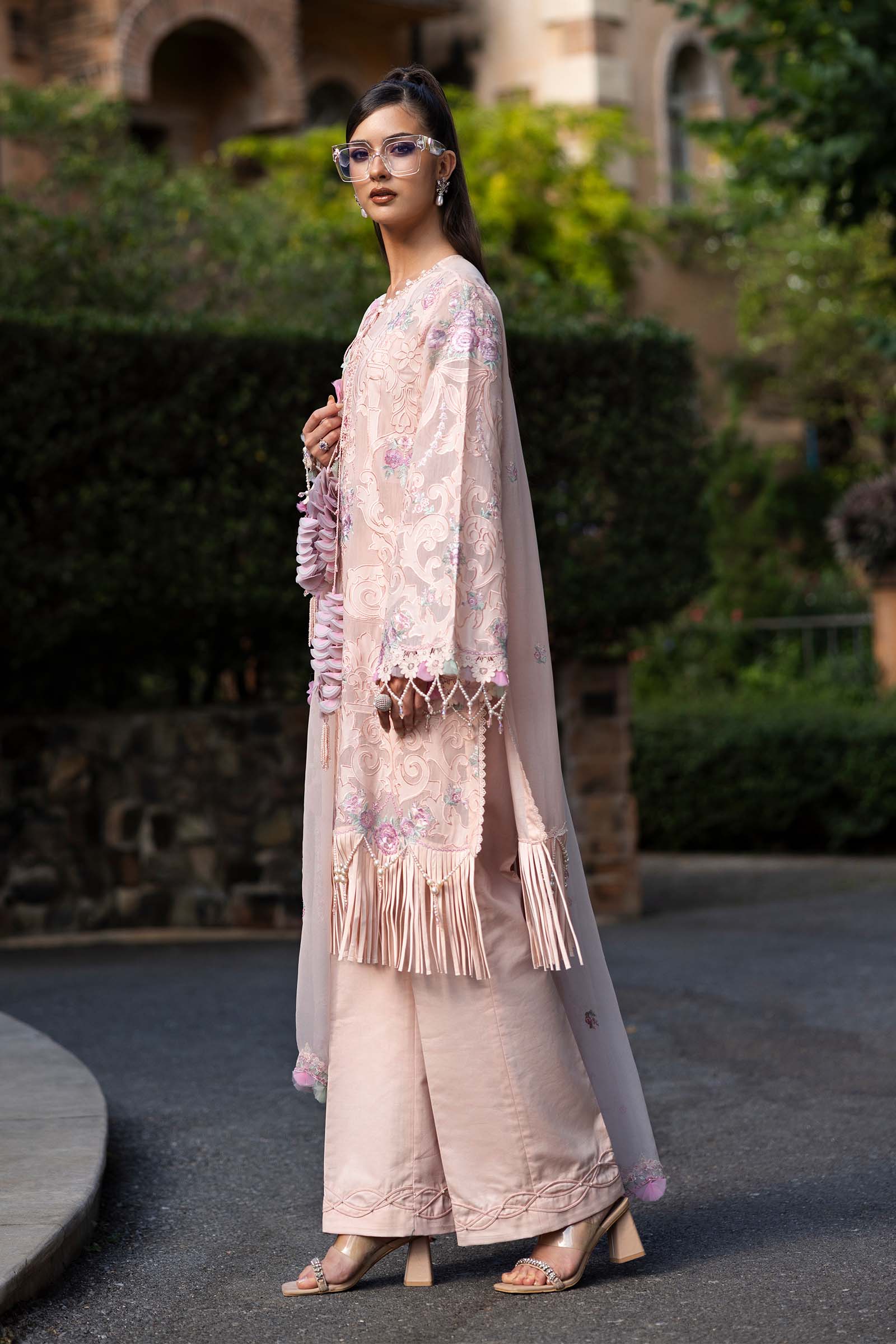 Shirt: Laser & Thread Embroidery Layered With Poly Lawn For A Summer Friendly Feel Back: Multicolor Floral Thread Embroidery Spray Dupatta: Multicolor Floral In Thread Embroidery Spray With Scalloped Border Shirt & Back Fabric: Lawn Dupatta Fabric: Chiffon Color: Pale Peach