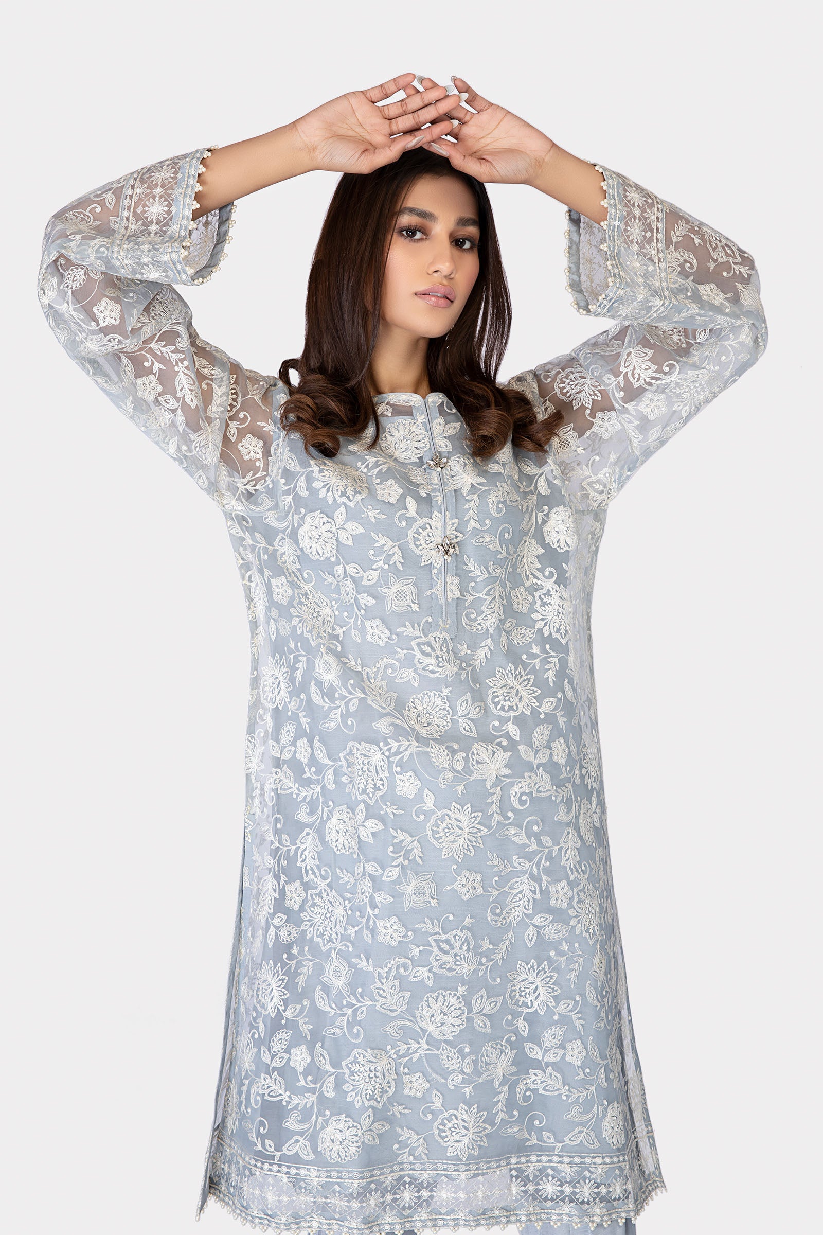 ORGANZA FABRIC EMBELLISH WITH THREAD & SEQUINS EMBROIDERY