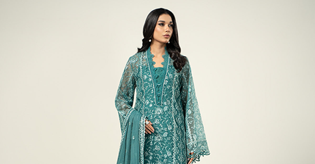 Shirt: All-Over Structural Embroidery With Lurex Tilla & Sequins DetailingDupatta: Dyed Dupatta With EmbroideryColor: Sea GreenFabric: OrganzaNote: Dry Clean Only