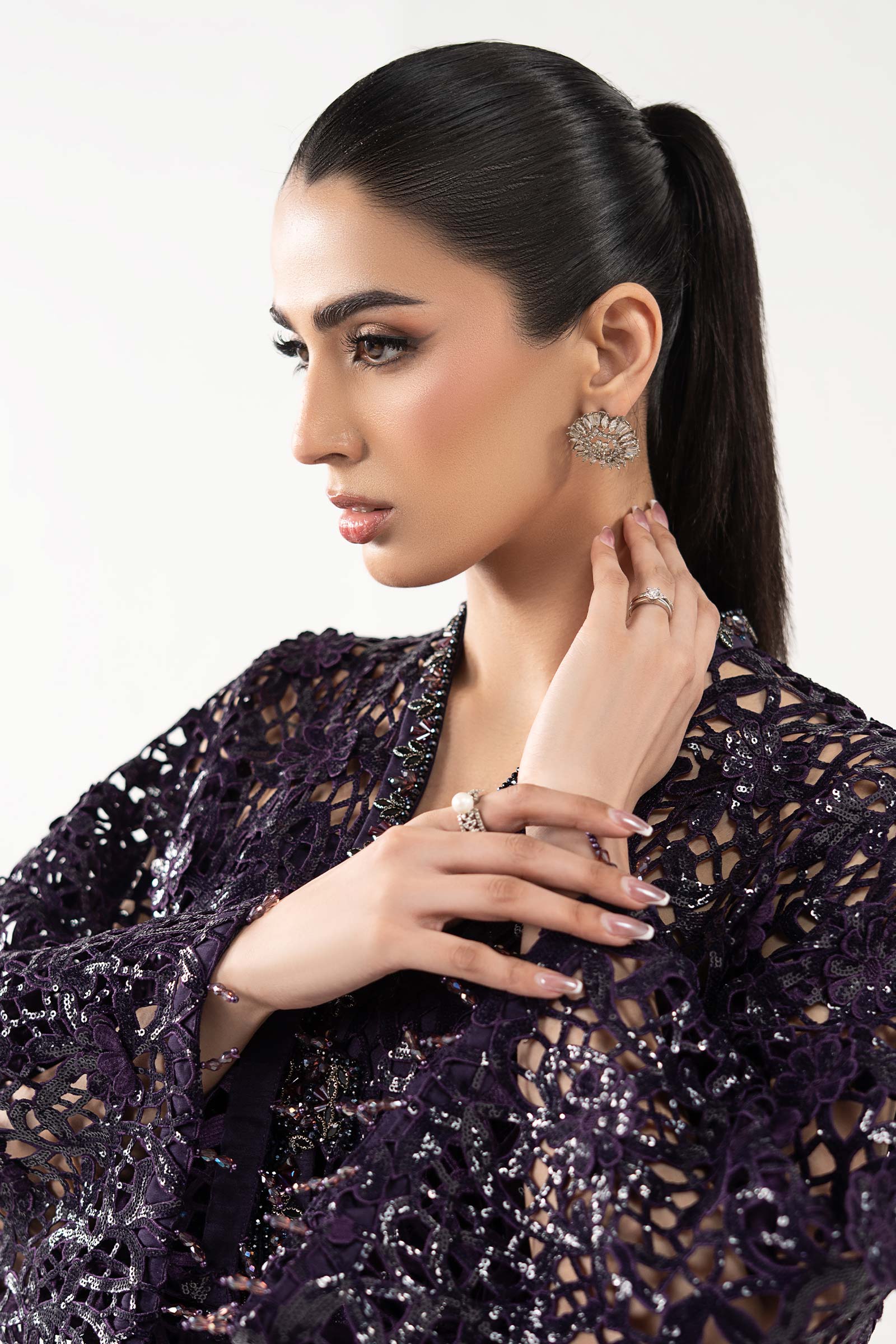 Shirt: Sequin Laced Mesh Incorprated With Cutwork Floral Pattern Fabric: Lace Color: Deep Purple