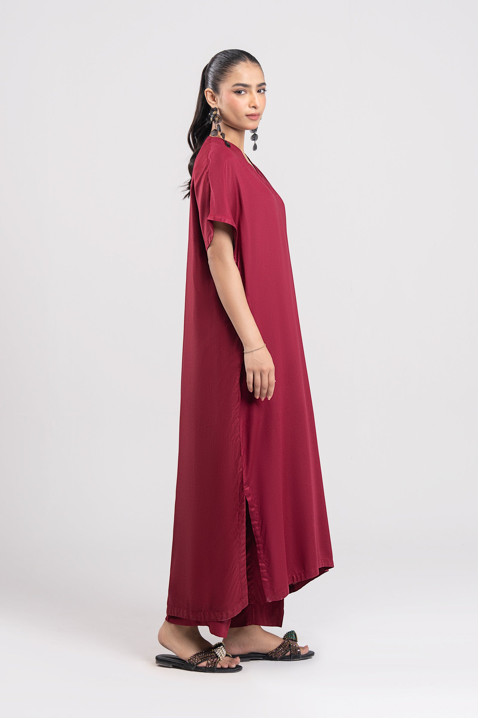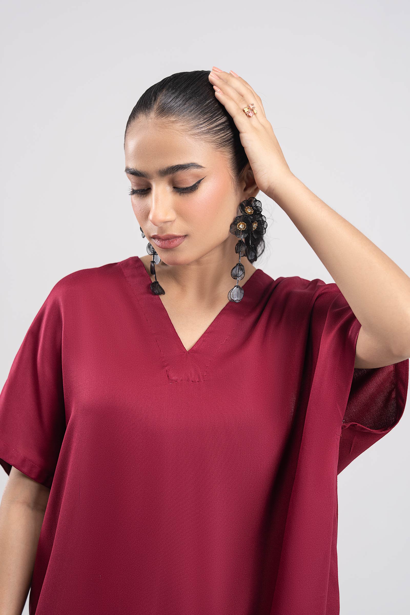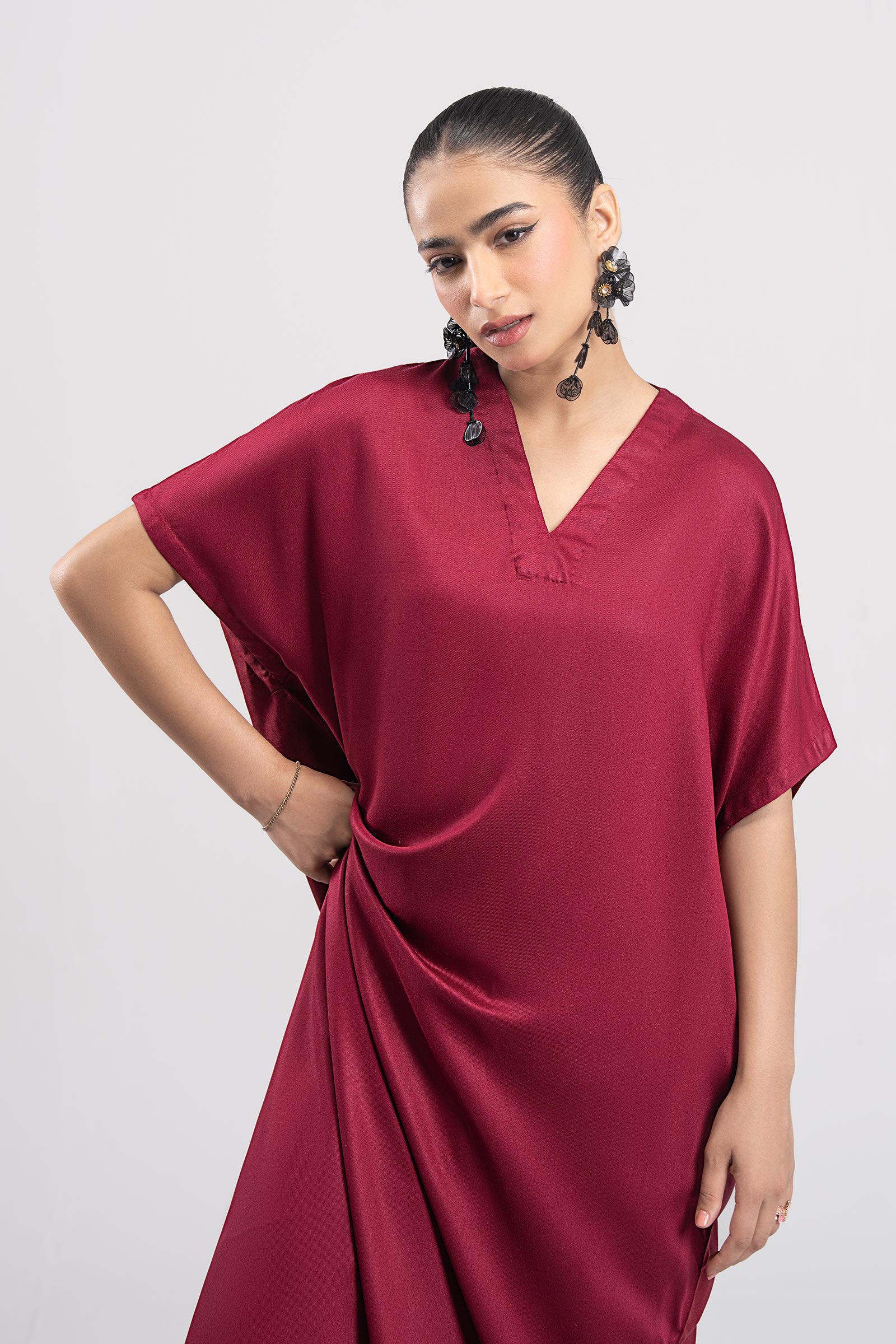 TunicLoose-Fit TunicV-NecklineBox Pleat Detailing On FrontShort Side SlitsColor: MaroonFabric: Lightweight TwillFit: RegularTrousersDyed CulottesElasticated WaistbandColor: MaroonFabric: Lightweight TwillFit: RegularModel is wearing size xsNote: Dry Clean Only