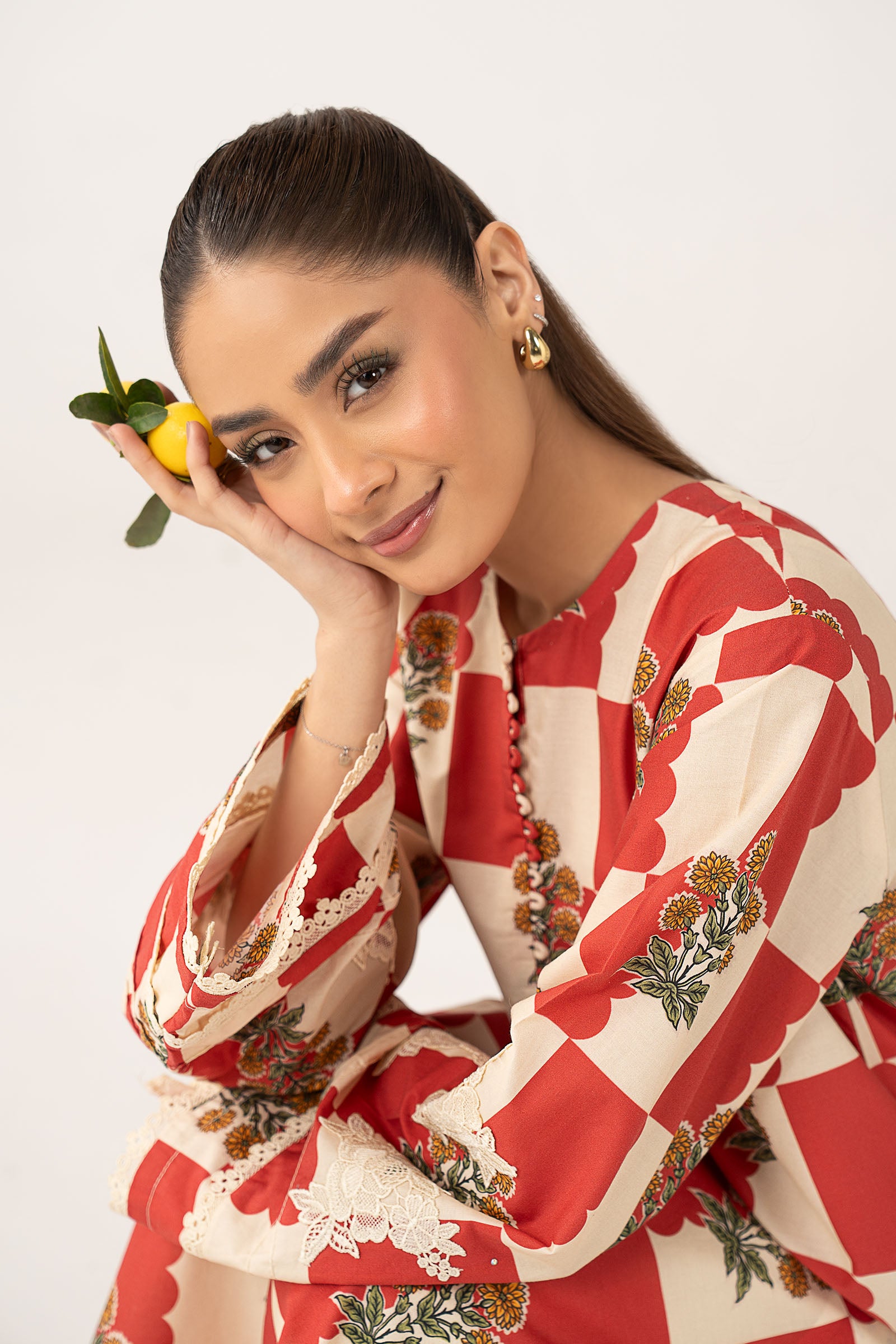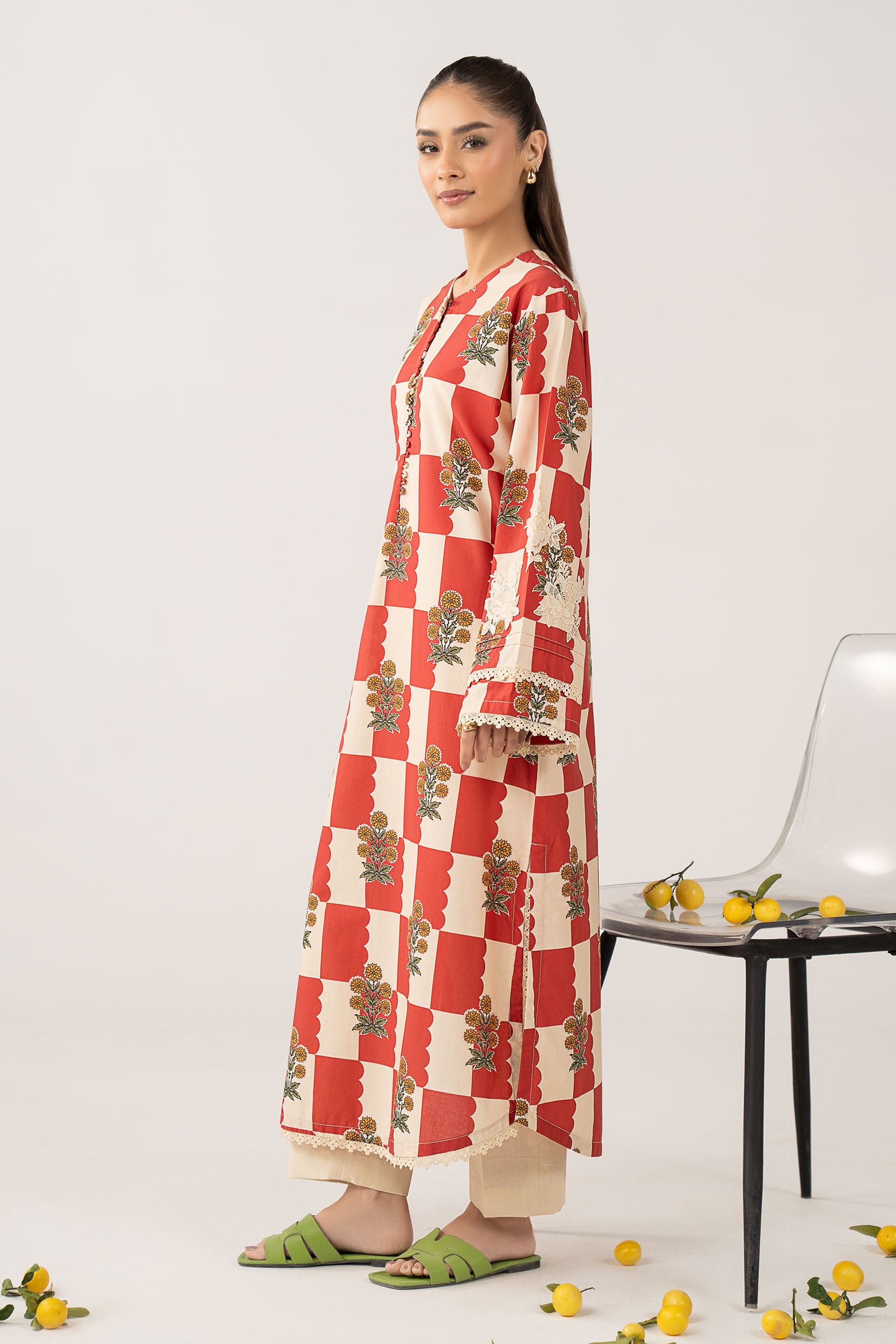 1 Piece - ShirtEmbroidered Loose-Fit ShirtBand Collar Neckline With Slit DetailingStraight Sleeves With Embroidered MotifsColor: RedFabric: CambricModel is wearing xs sizeNote: Dry Clean Only