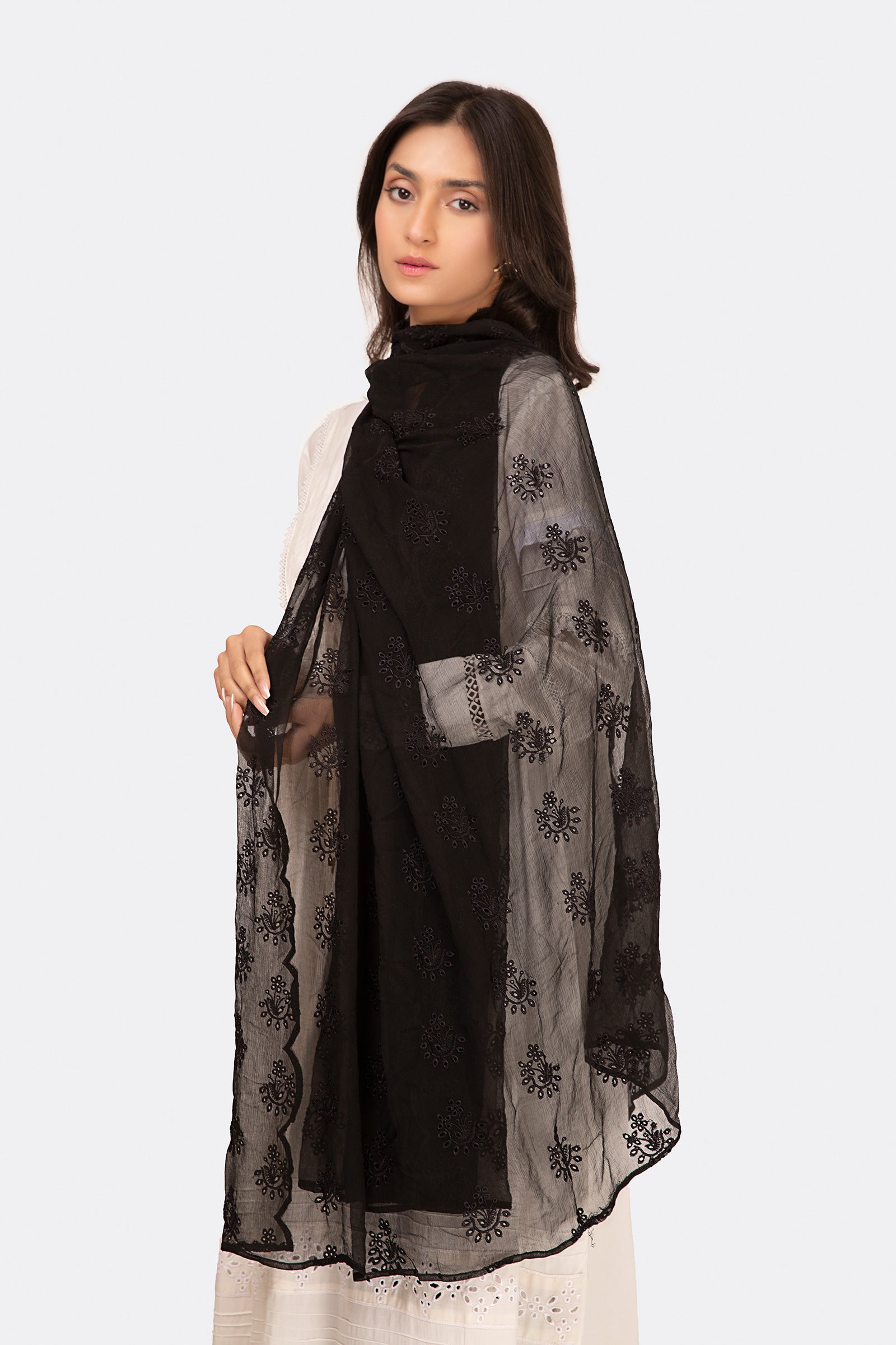 Schiffli embroidered dupatta.