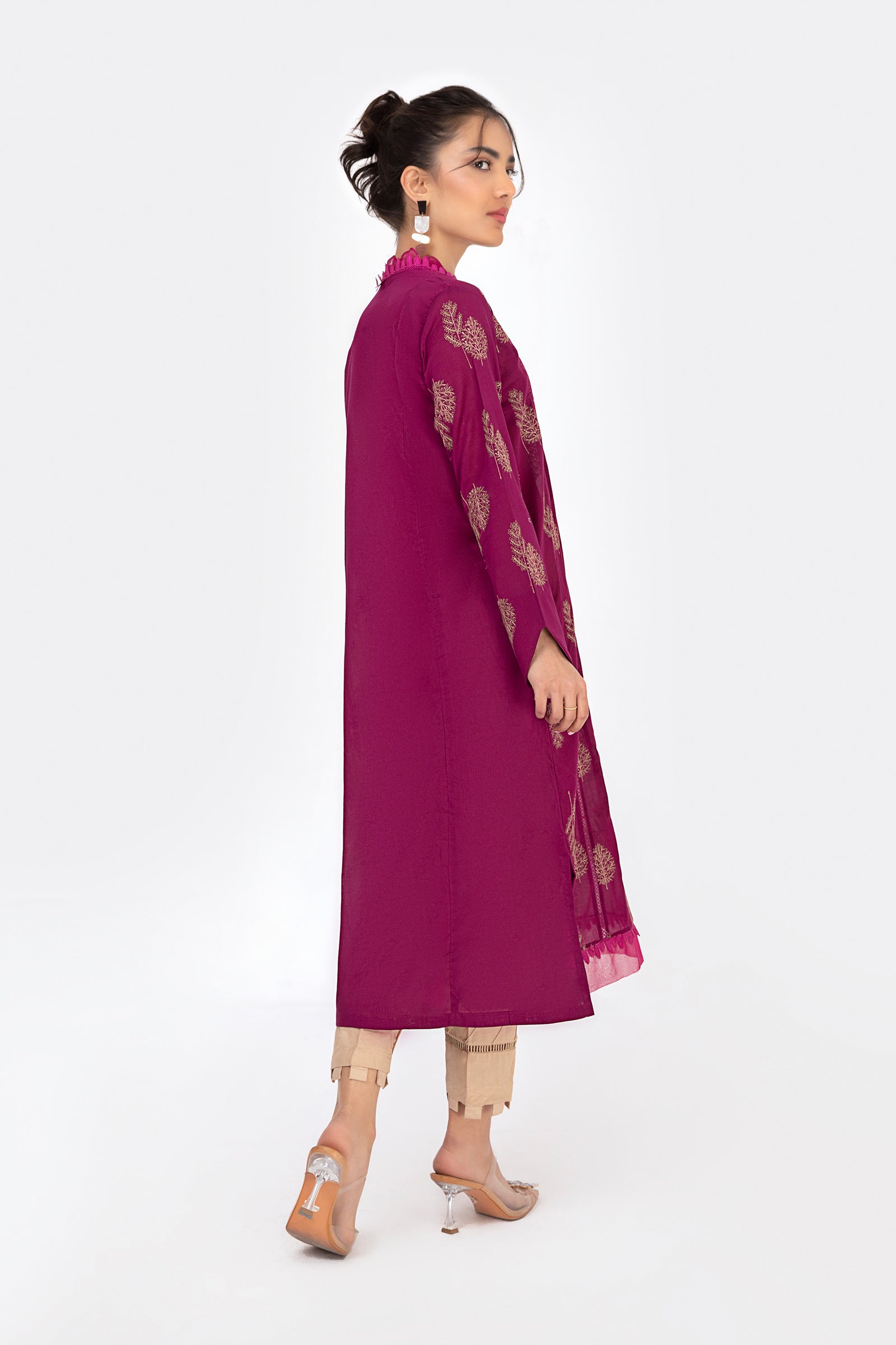 Allover embroidered kurta with lace details.