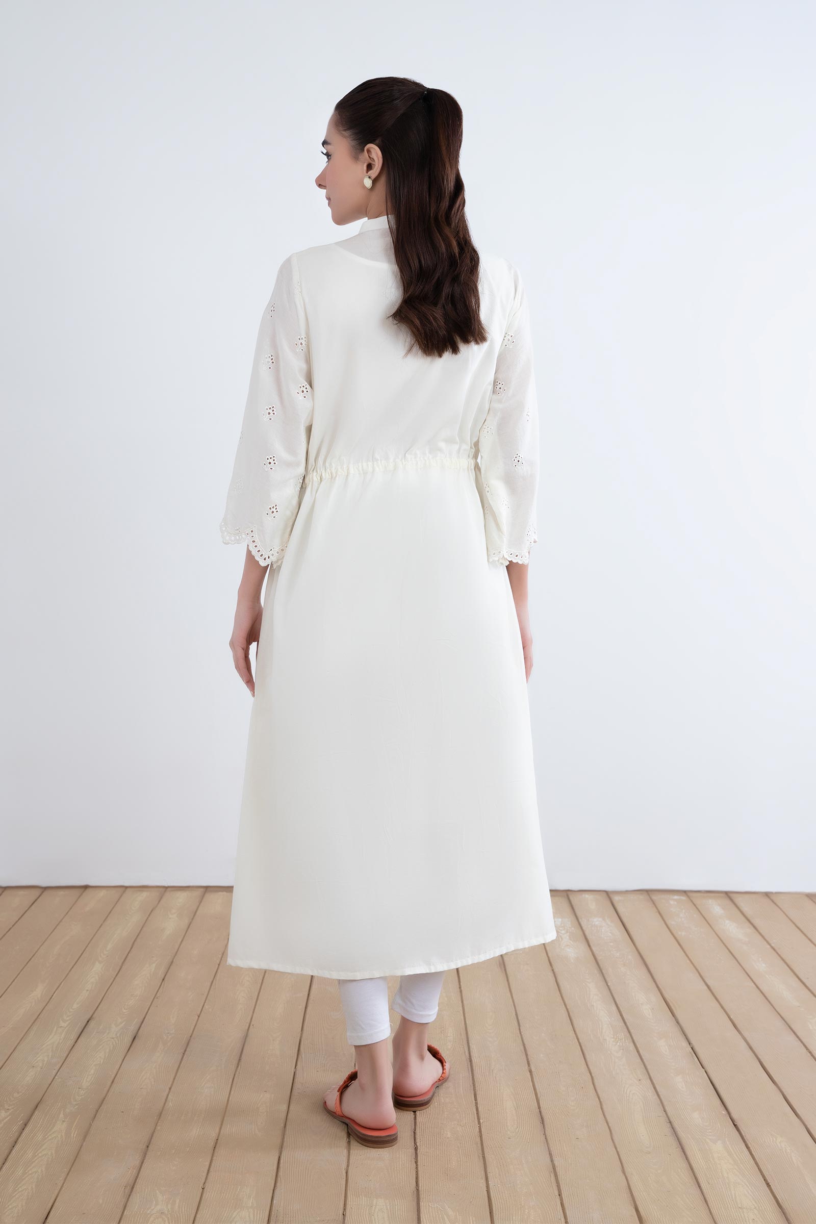 Exude charm this season with our off-white embroidered lawn dress adorning the canvas with schiffli embroidery for understated elegance.