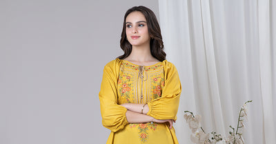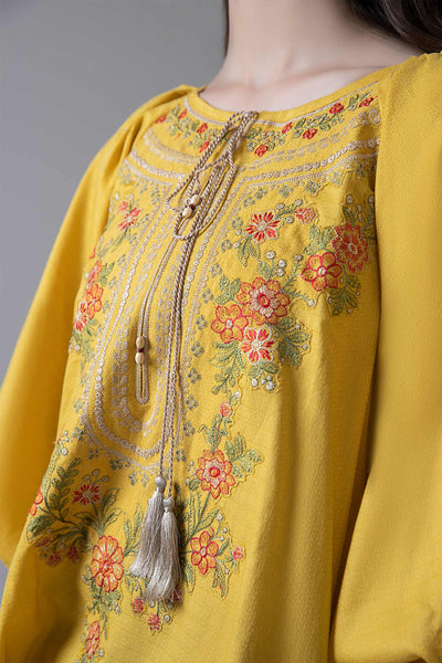 Details: Dyed Shirt, Boat Neckline With Beaded Tassels, Embroidered Yoke, Gathered Sleeves,