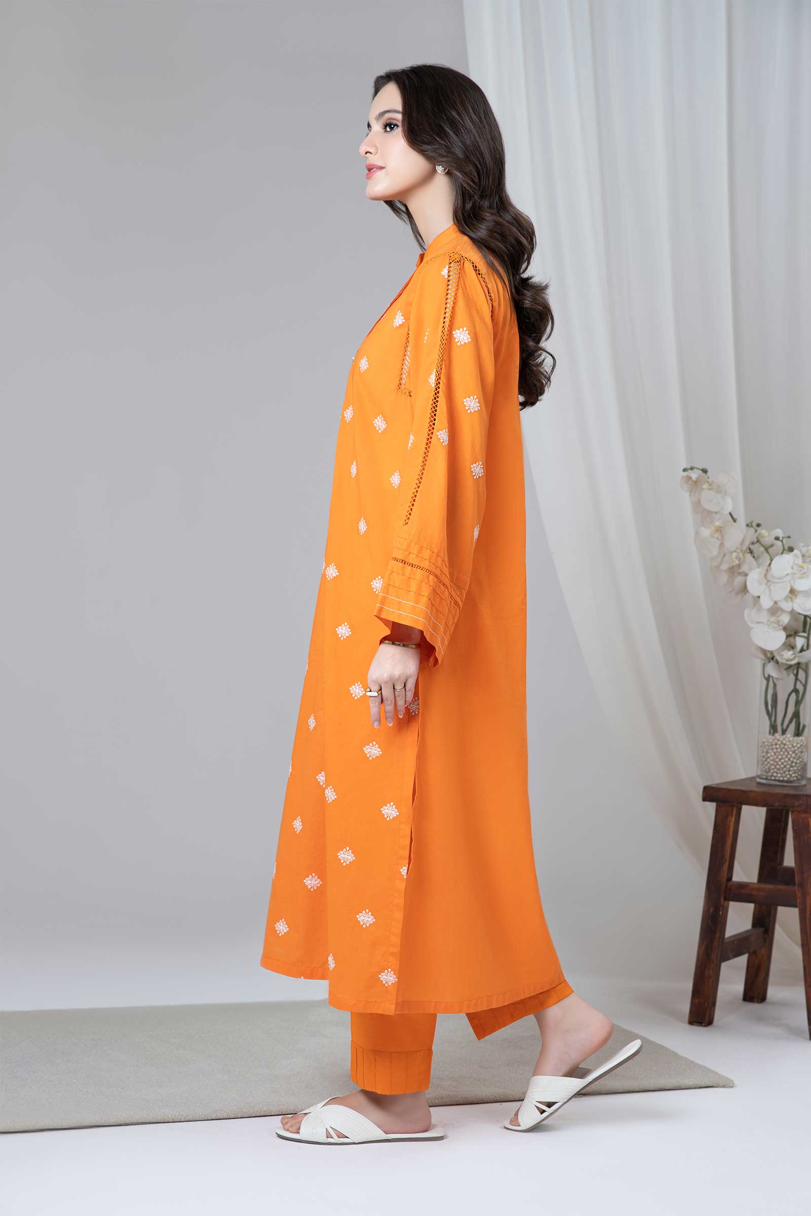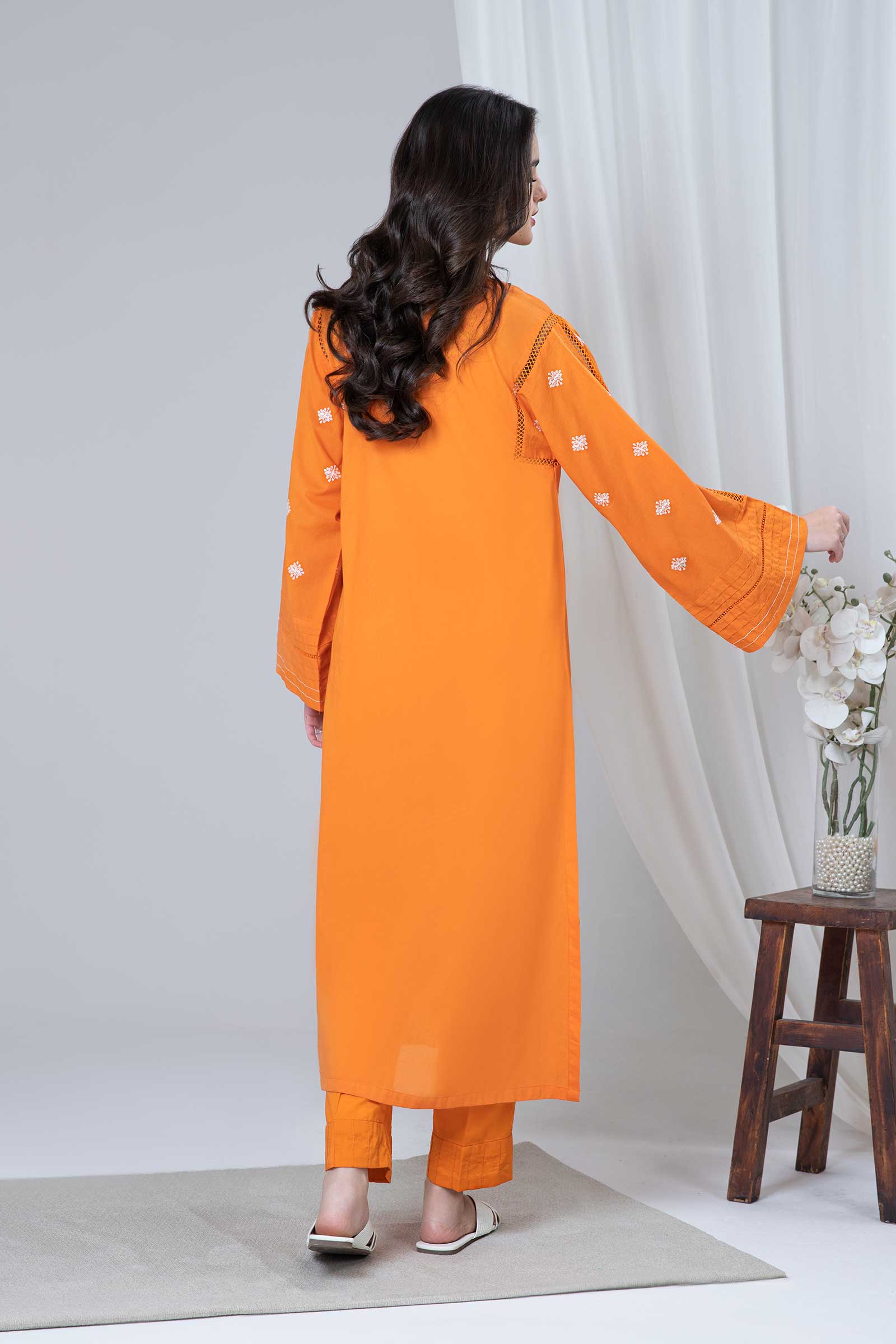 Details: Long Shirt, Dyed Front & Back, Band Collar Neckline With Button Detailing, Embroidered Full Sleeves With Pleats, Threadwork & Lace Detailing, All-Over Embroidered Front