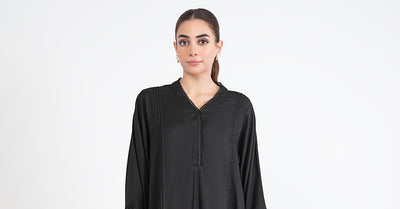 Details: Long Shirt, Dyed Front & Back, Kashmiri Neckline With Button & Lace Detailing, Full Sleeves With Embroidery & Organza Detailing,