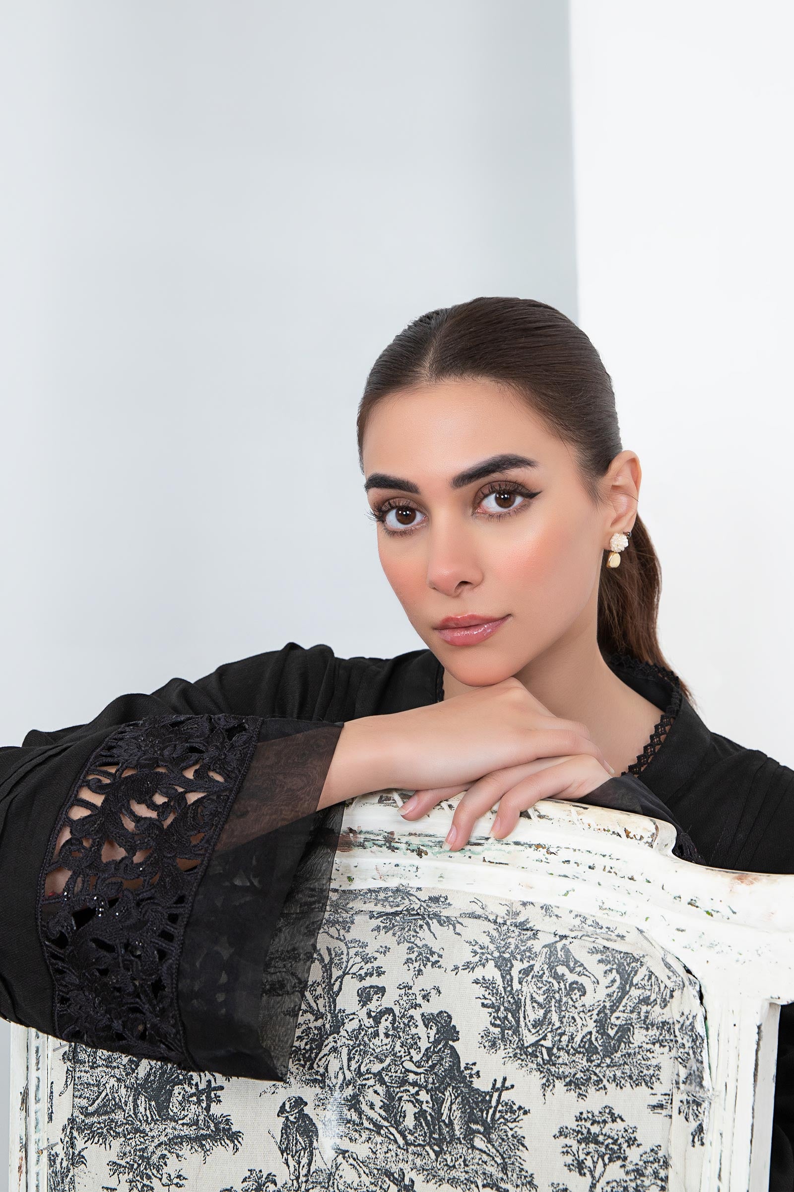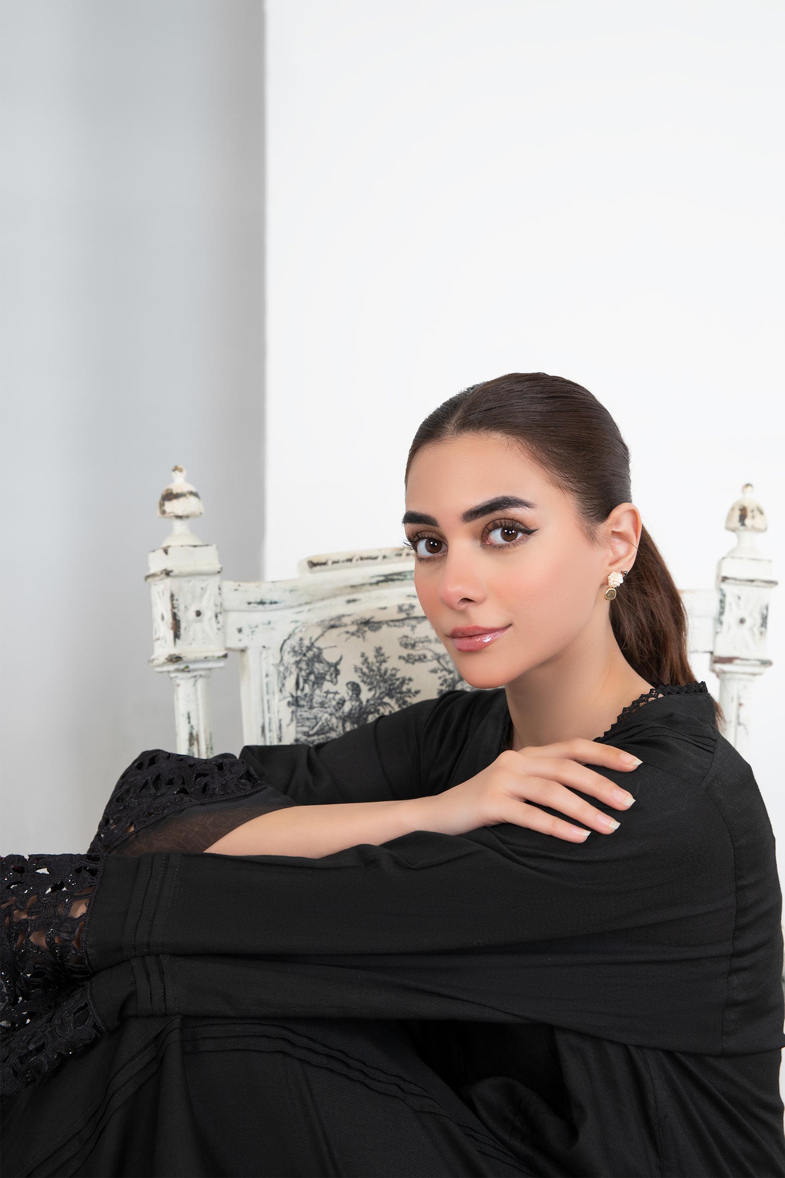 Exude sophistication with our black 2 pieces dyed dobby lawn suit accented with flourish embroidery and organza detailing paired with straight trousers.ShirtDetails: Long Shirt, Dyed Front & Back, Kashmiri Neckline With Button & Lace Detailing, Full Sleeves With Embroidery & Organza Detailing, Colour: BlackFabric: Dobby LawnTrousersDetails: Dyed Straight Trousers With Pleats & Organza Detailed HemColour: BlackFabric: DobbyNote: Only Dry CleanModel is wearing size xs
