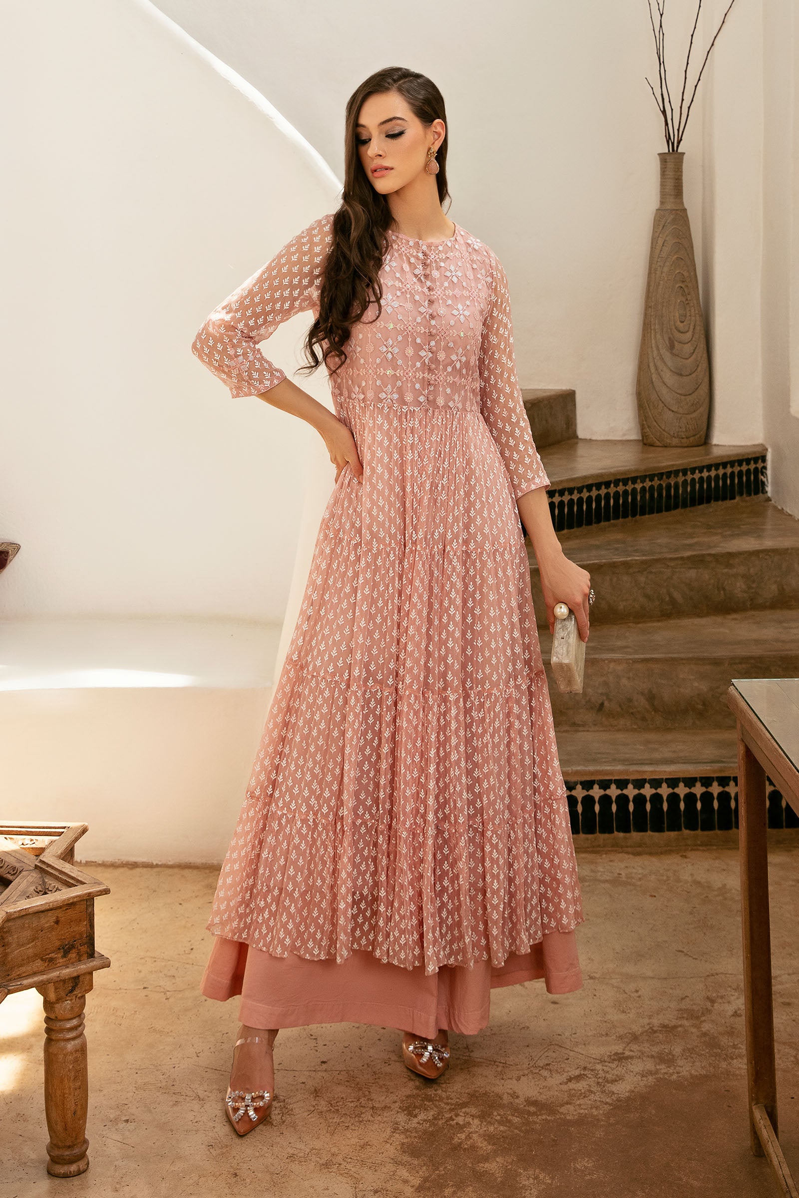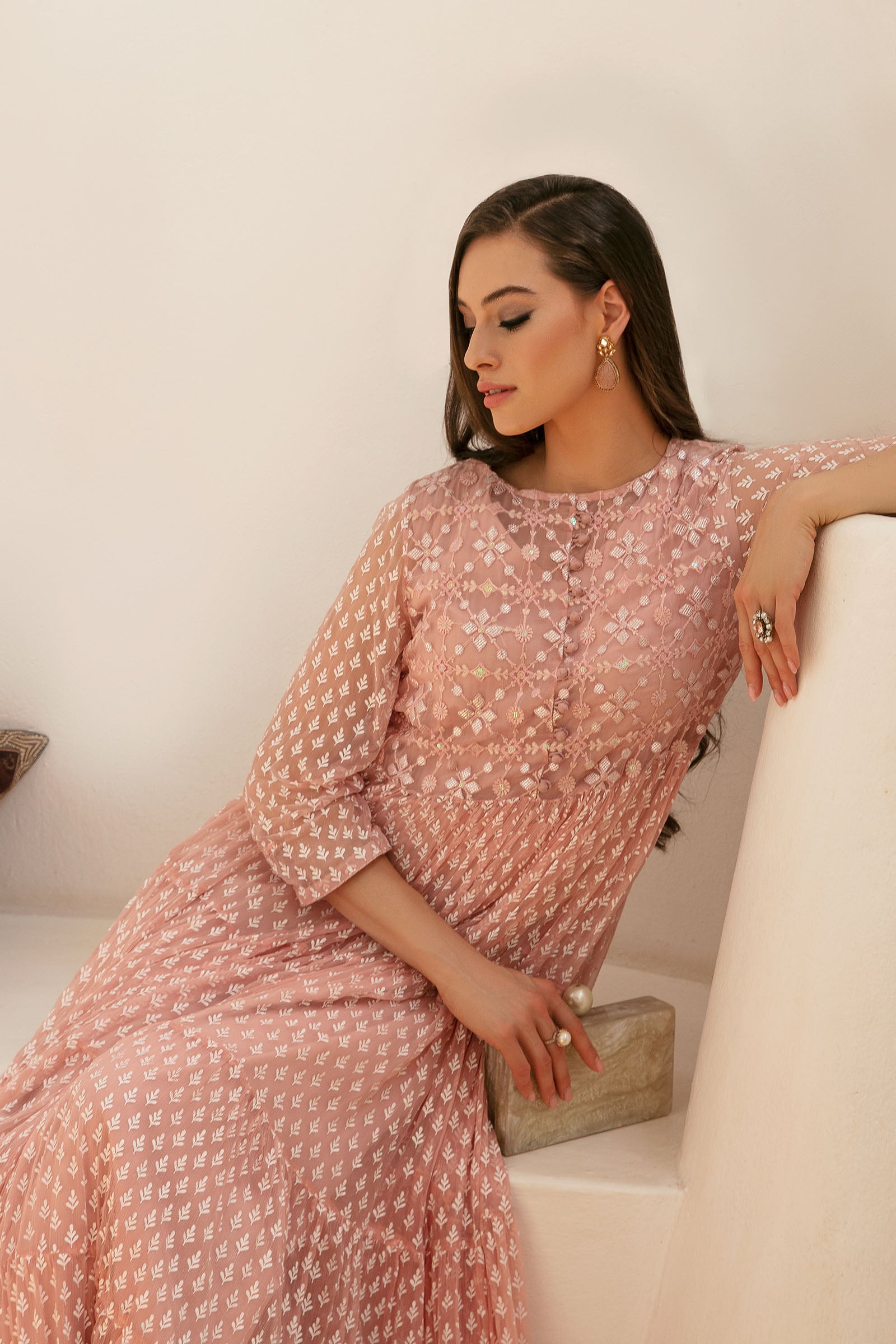 Screen printed embroidered dress.