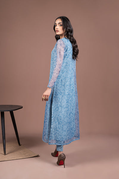 Details: Sequins & Tilla Embroidered Digital-Printed Shirt, Long Straight-Cut, Embroidered Round Neckline With Buttoned-Loop, Full Sleeves