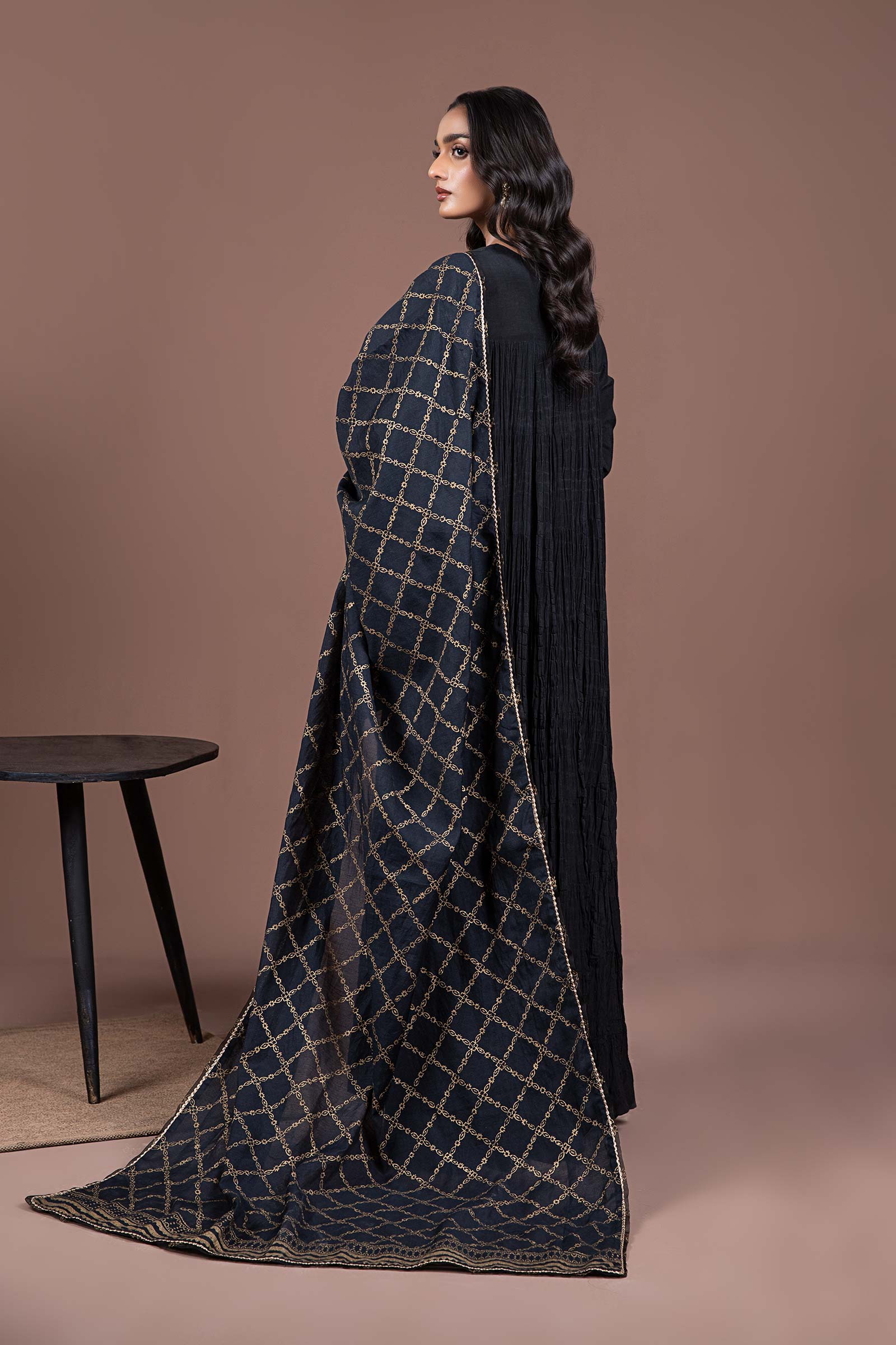 Our dyed raw silk shirt features a contemporary crushed silhouette beautifully enriched with scintillating tilla button detailing in bold black palette.