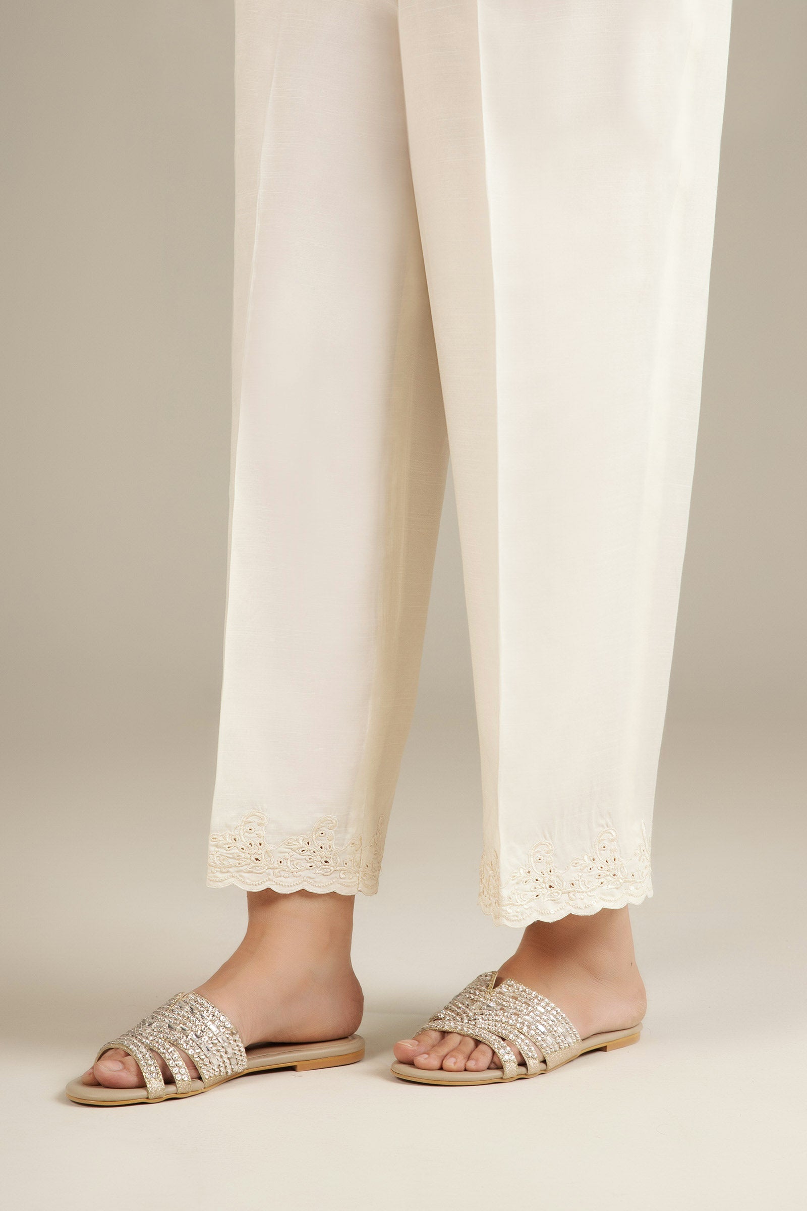 Dyed Cropped Pants With Embroidered Scalloped Hem