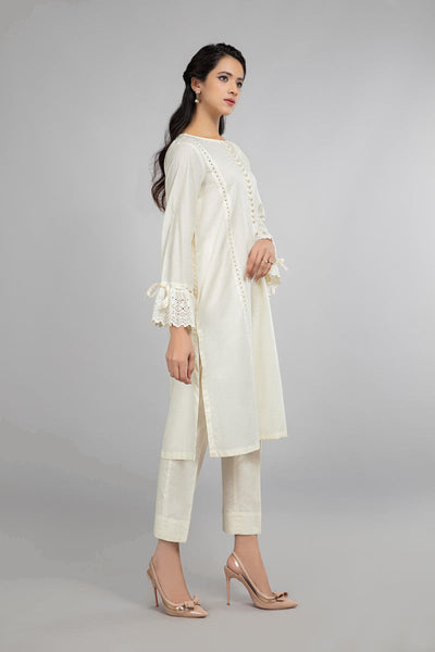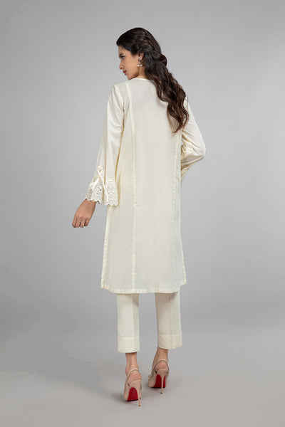 Schiffli embroidered kurta with gathered sleeves and button details