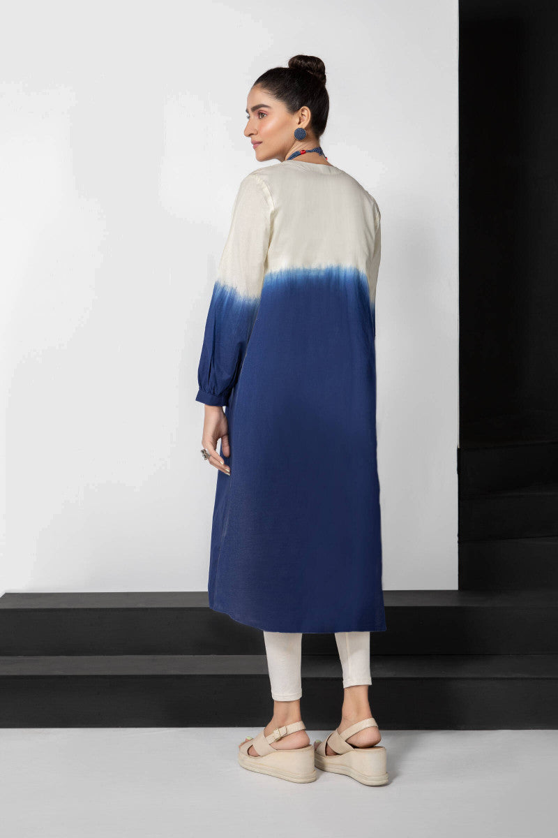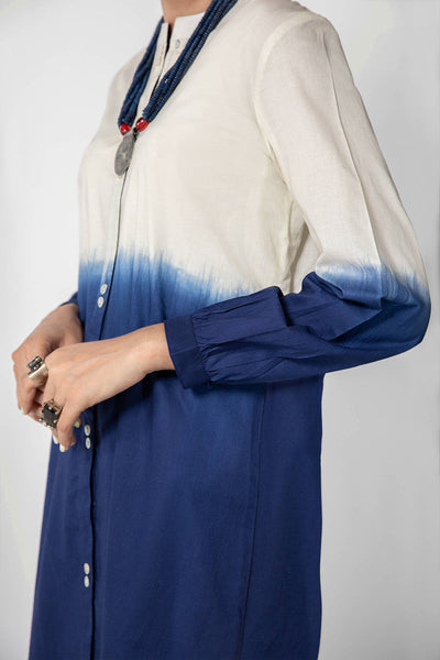 Shirt fabric: lawn Button down shaded dress with scoop neck