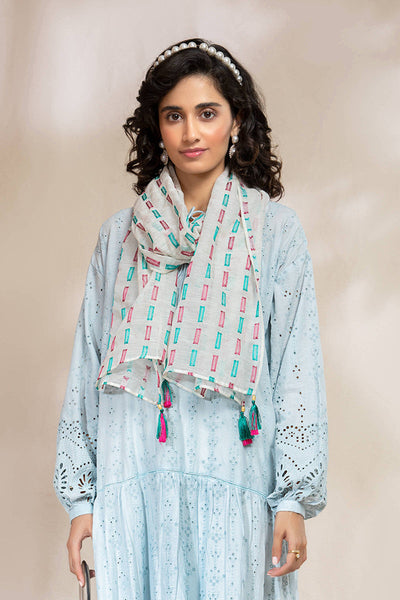 Scarf fabric: Cotton net Embroidered scarf with tassel