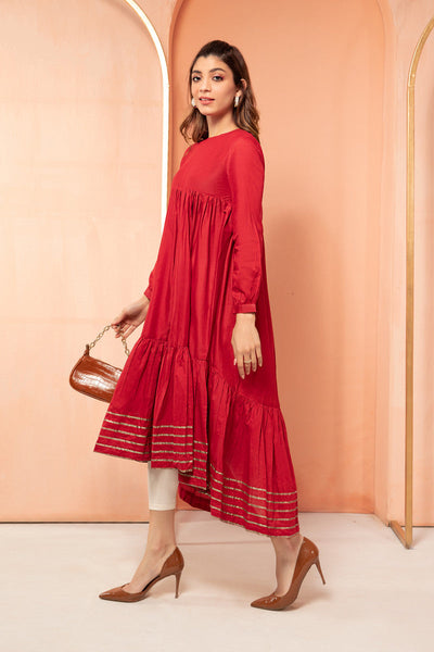 Shirt fabric: Lawn Long gathered dress with block printed hem