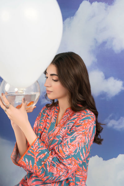 Straight Sleeves With Contrast Binding & Wooden Beads On Cuffs