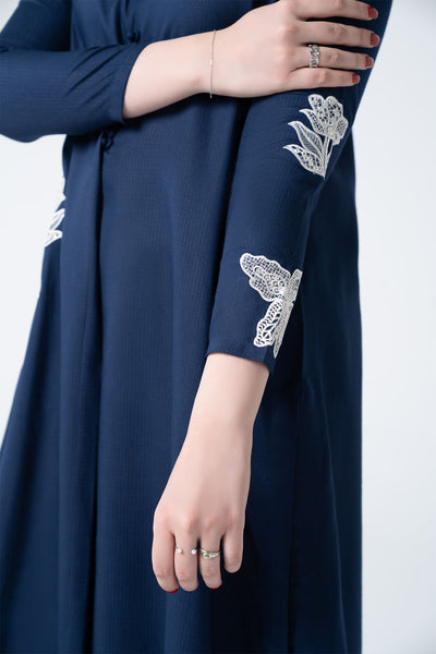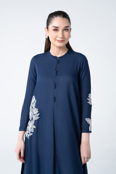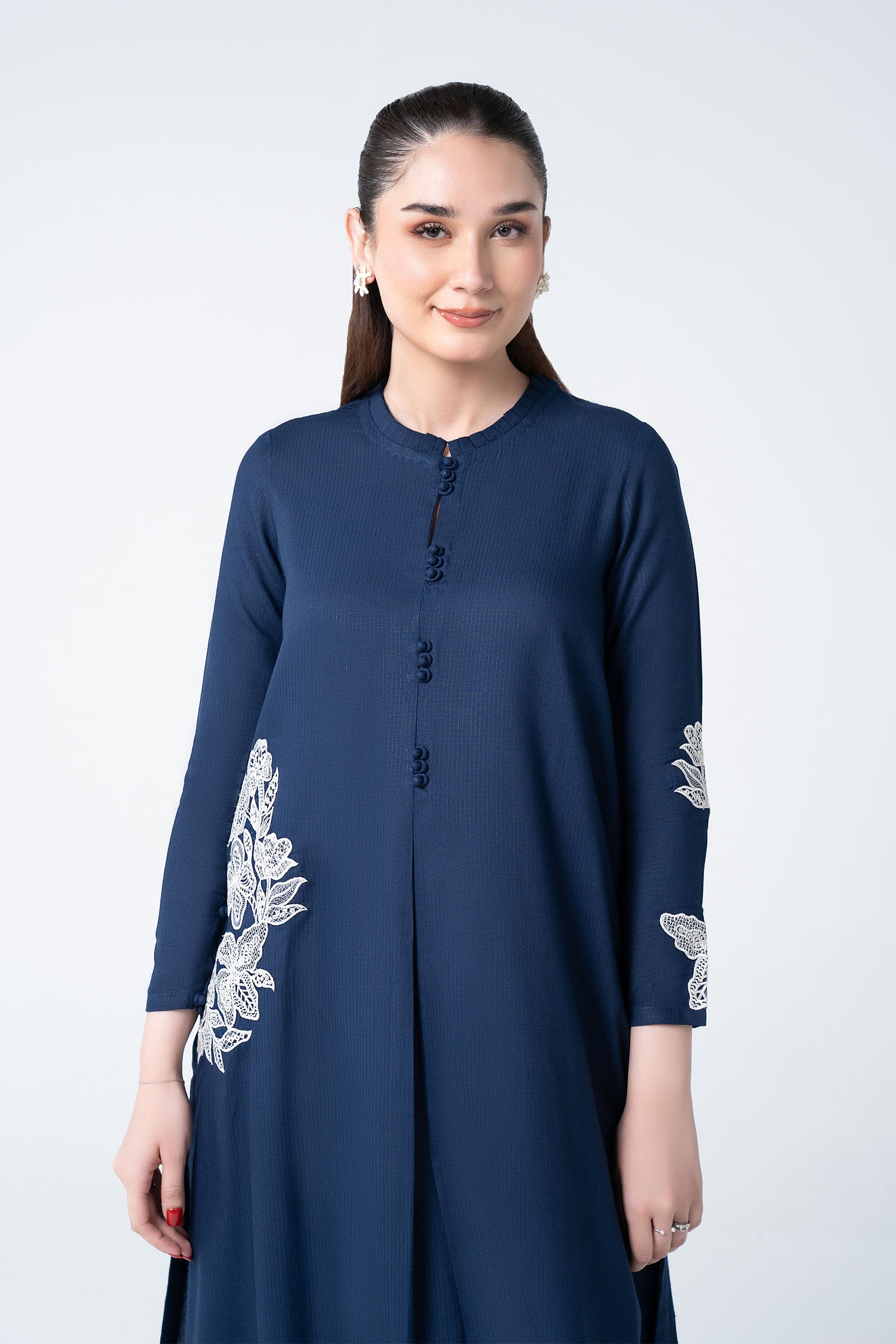 Band Collar Neck With Frill & Loop-Buttons Detailing