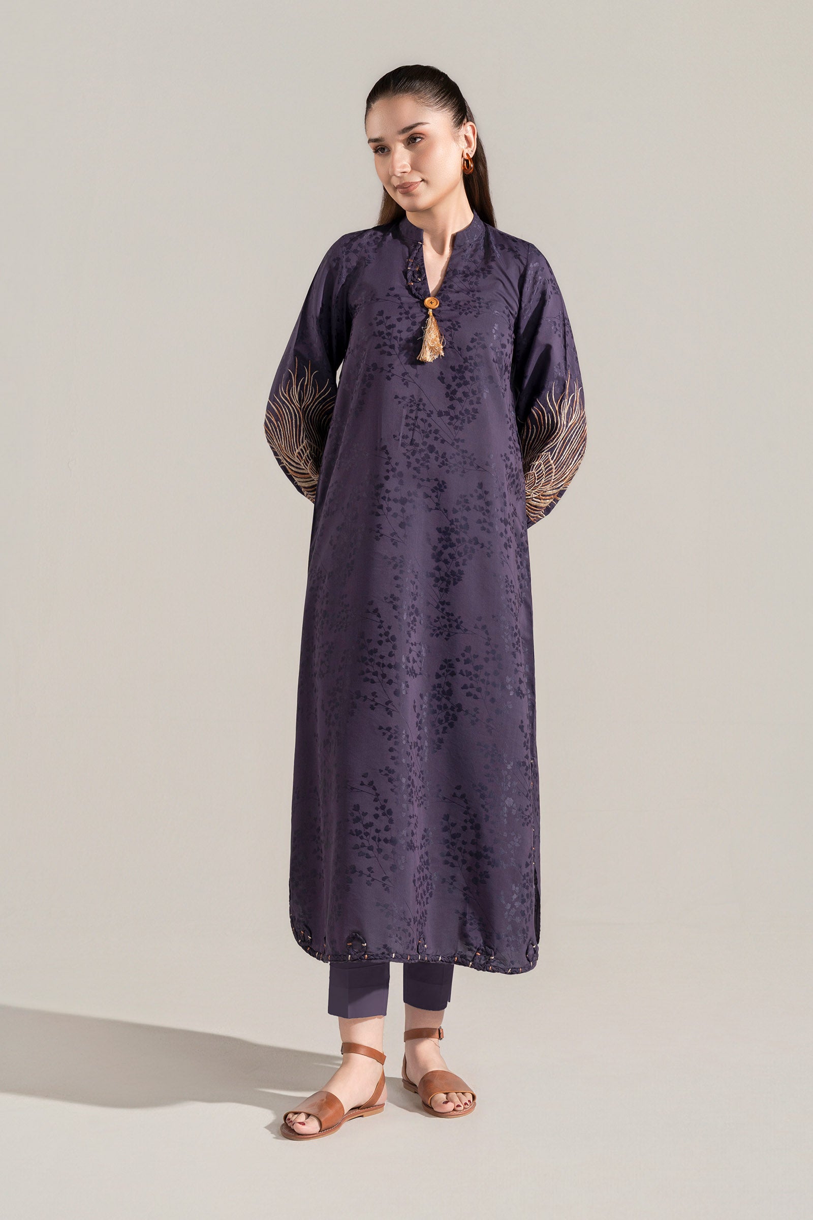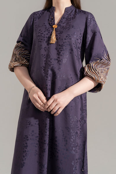 Band Collar V-Neck With Tassel & Fabric Detailing