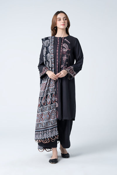 Straight Sleeves With Pleats Detailing & Embroidered Border