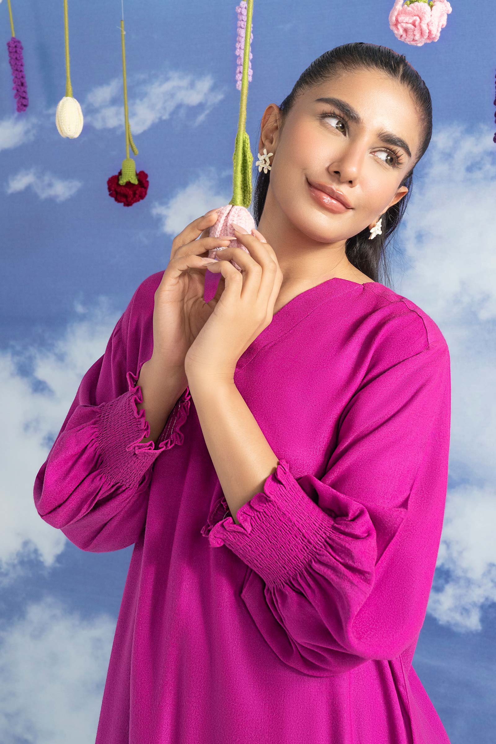 ShirtLoose-Fit ShirtV-NecklineLong Sleeves With Smoking CuffsBack Yoke Color: PinkFabric: Alpine WoolFit: RegularShalwarFarshi ShalwarElasticated WaistbandColor: PinkFabric: Alpine WoolFit: RegularModel is wearing xs sizeNote: Dry Clean Only