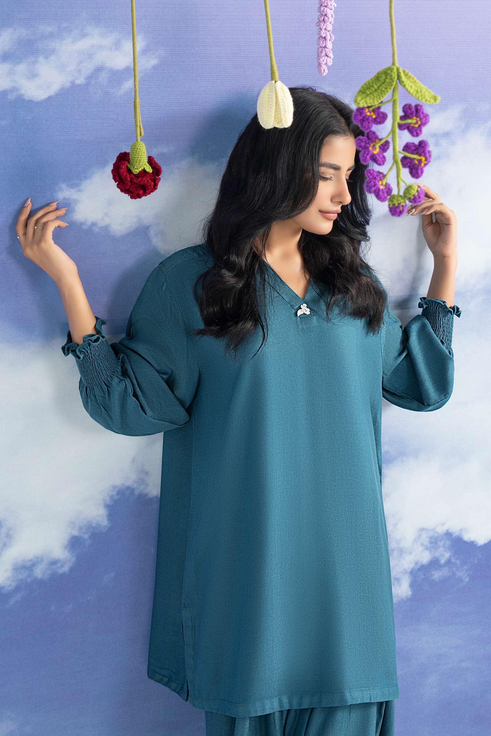 ShirtLoose-Fit ShirtV-NecklineLong Sleeves With Smoking CuffsBack Yoke Color: ZincFabric: Alpine WoolFit: RegularShalwarFarshi ShalwarElasticated WaistbandColor: ZincFabric: Alpine WoolFit: RegularModel is wearing xs sizeNote: Dry Clean Only