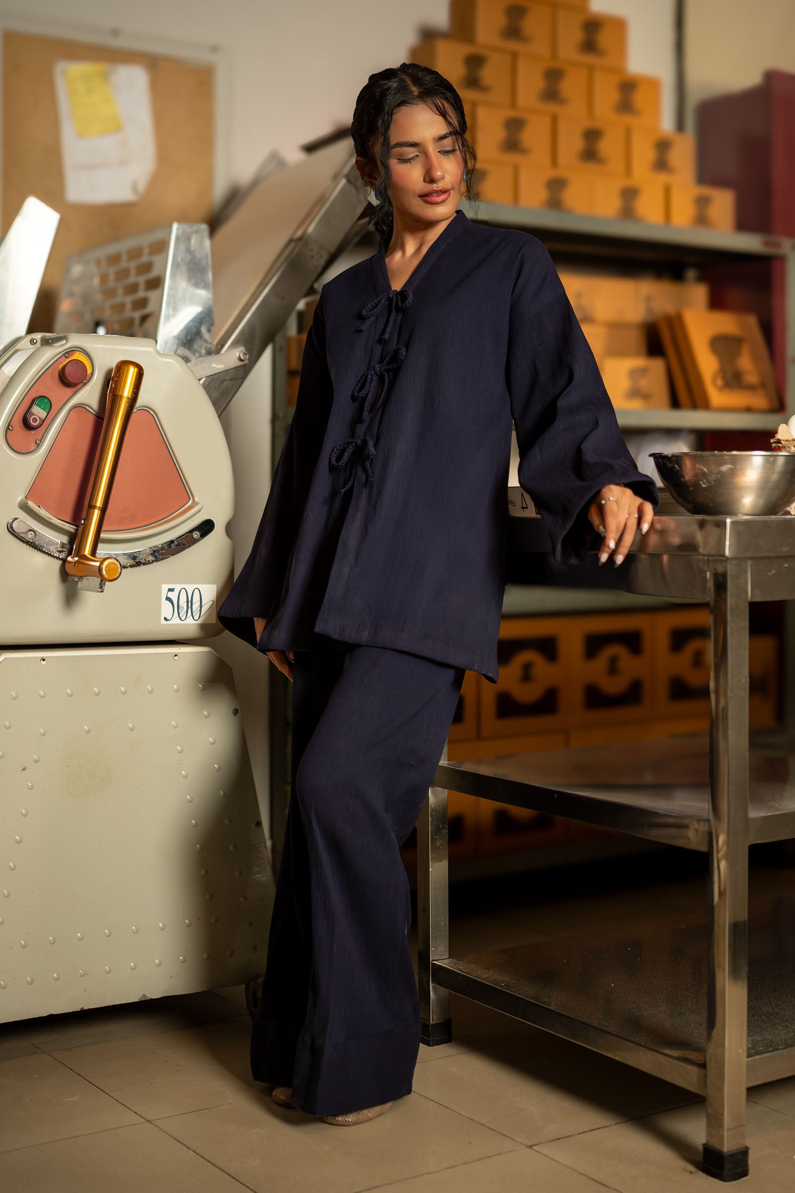 Front-Open Shirt With Bow Detailing