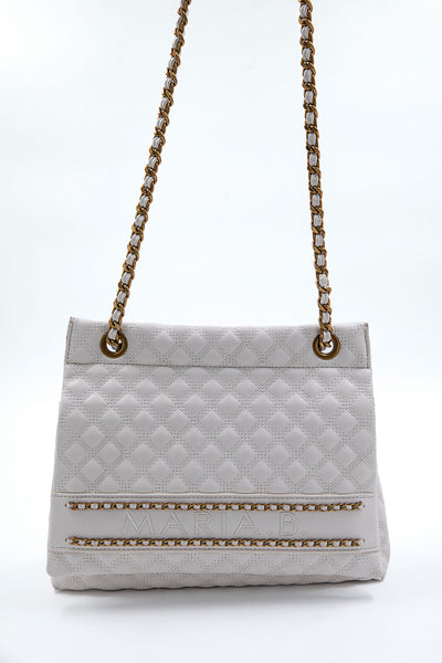 Elevate your style with this statement-making shoulder bag that transcends borders with a soft quilted exterior, reflecting both worldly charm and contemporary finesse with a signature flap and a metallic braided adjustable strap. It is finished in luxurious gold-tone hardware that is perfect to grace your soirees.