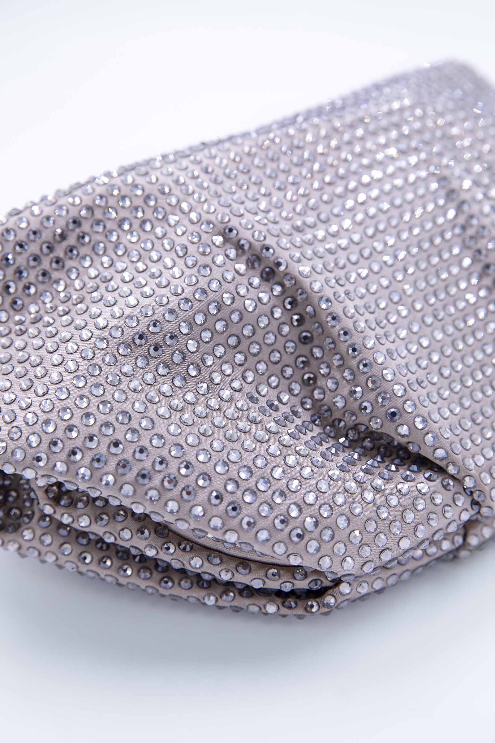 This elegant yet statement clutch is adorned with intricate embellishments, adding a touch of glam to the clutch. This classy piece makes as an ultimate selection for special occasions or a night out. It comes in two bold colors black and sand grey. Compact yet trendy, it holds your essentials effortlessly. Details Clutch Metallic braided shoulder chain Material: Embellished Interior Details: Single compartment Dimensions: 9”W X 6”H X 2.5”D"
