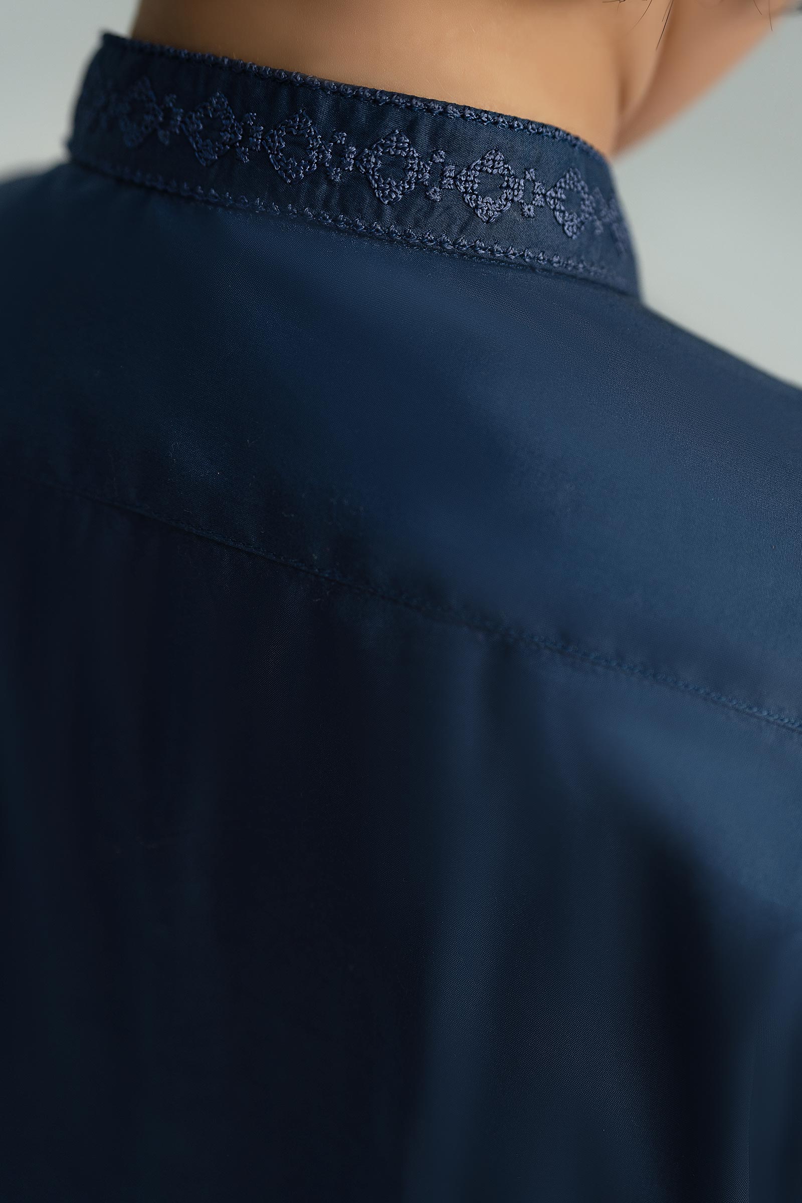 KurtaHeavy Embroidered Band Collar NecklineOne Side PocketStraight HemOpen Sleeves With Loop ButtonsShalwarDyed ShalwarColor: Mid BlueFit: RegularWear Type: FormalFabric: Cotton