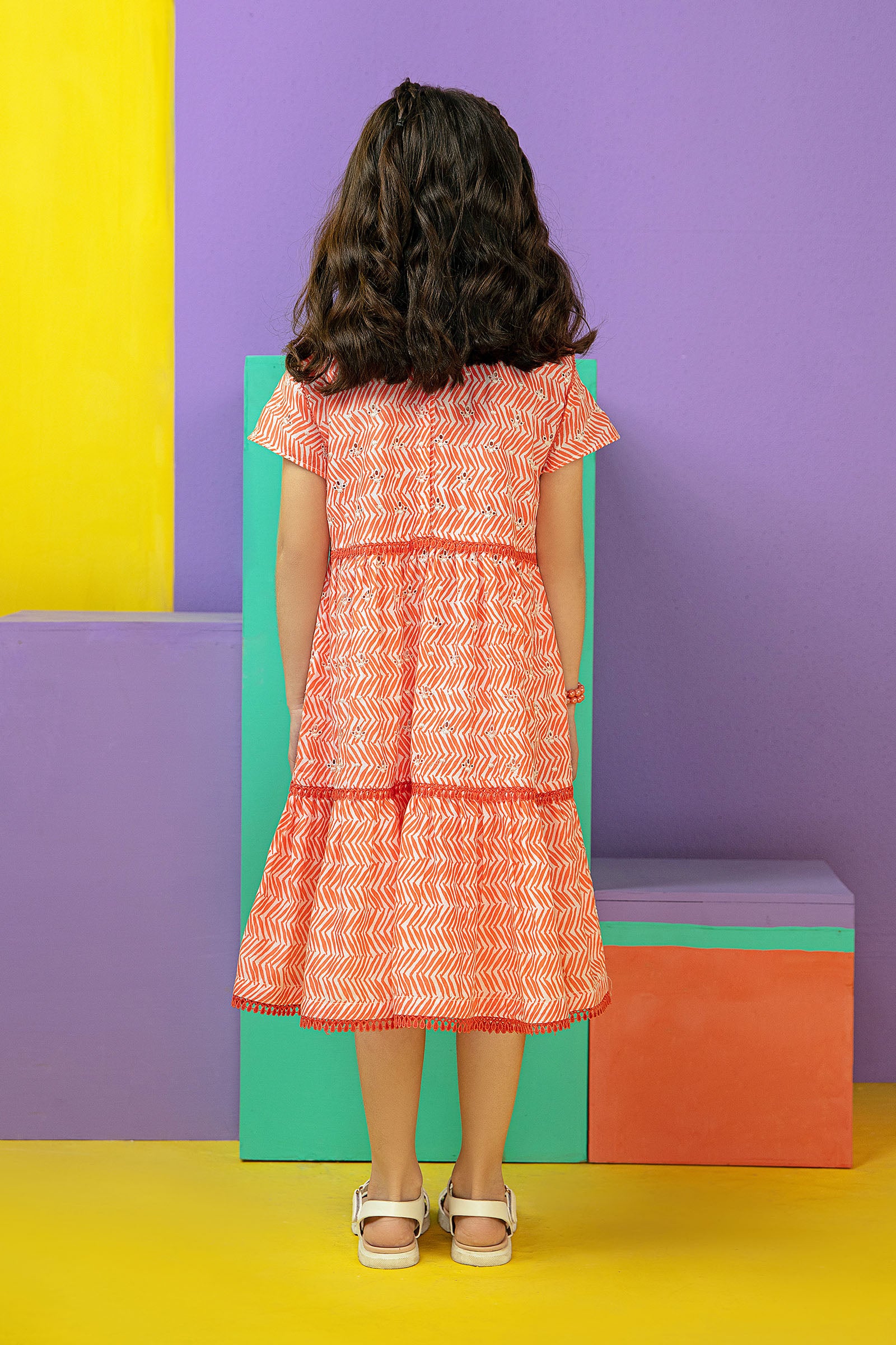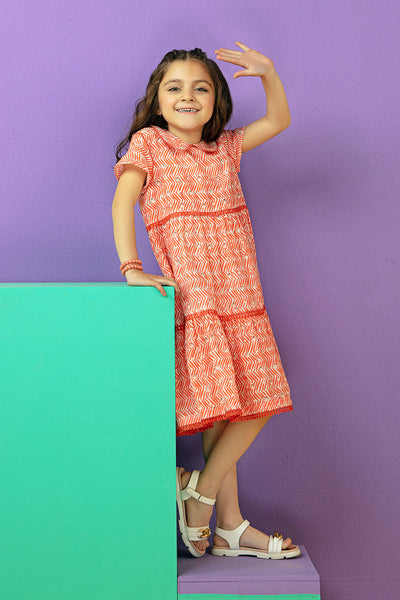 Screen printed 3 tier dress featuring lace details.