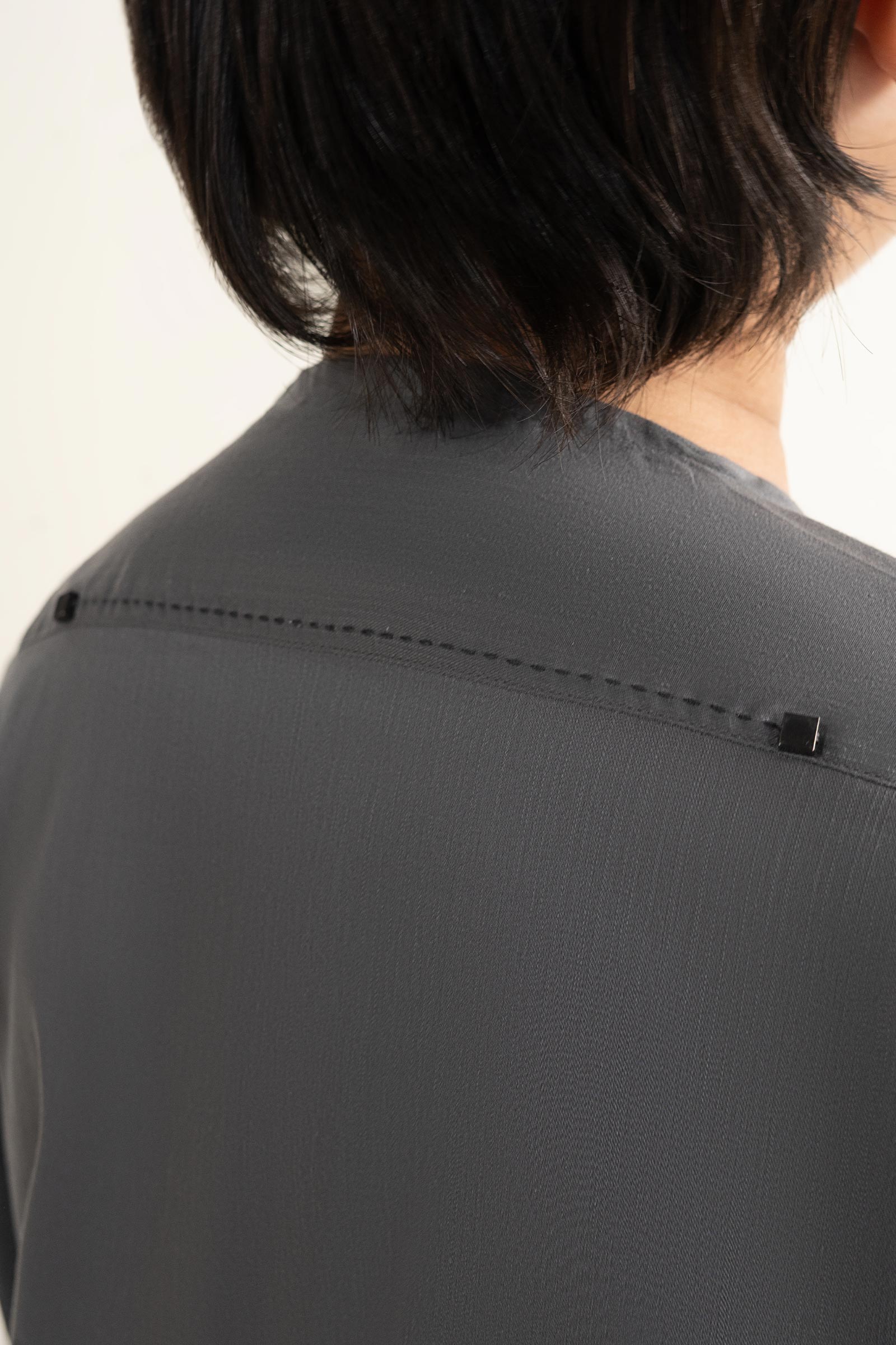 Round Neckline With Hidden-Zip Placket Front Pocket With Cut & Sew Detailing One Side Pocket Cuffed Sleeves With Hanging Loop-Button Detailing Saddle Stitched Back With Metal Studs Detailing Color: Lava Grey Fit: Regular Wear Type: Festive Fabric: Blended Model is wearing medium size Note: Dry Clean Only