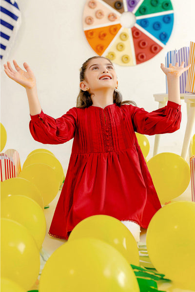 Red pleated top featuring lace and buttons details