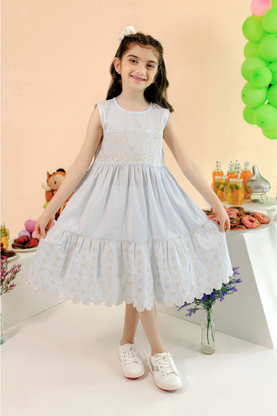 yarn dyed schiffli embroidered 3 tier maxi dress