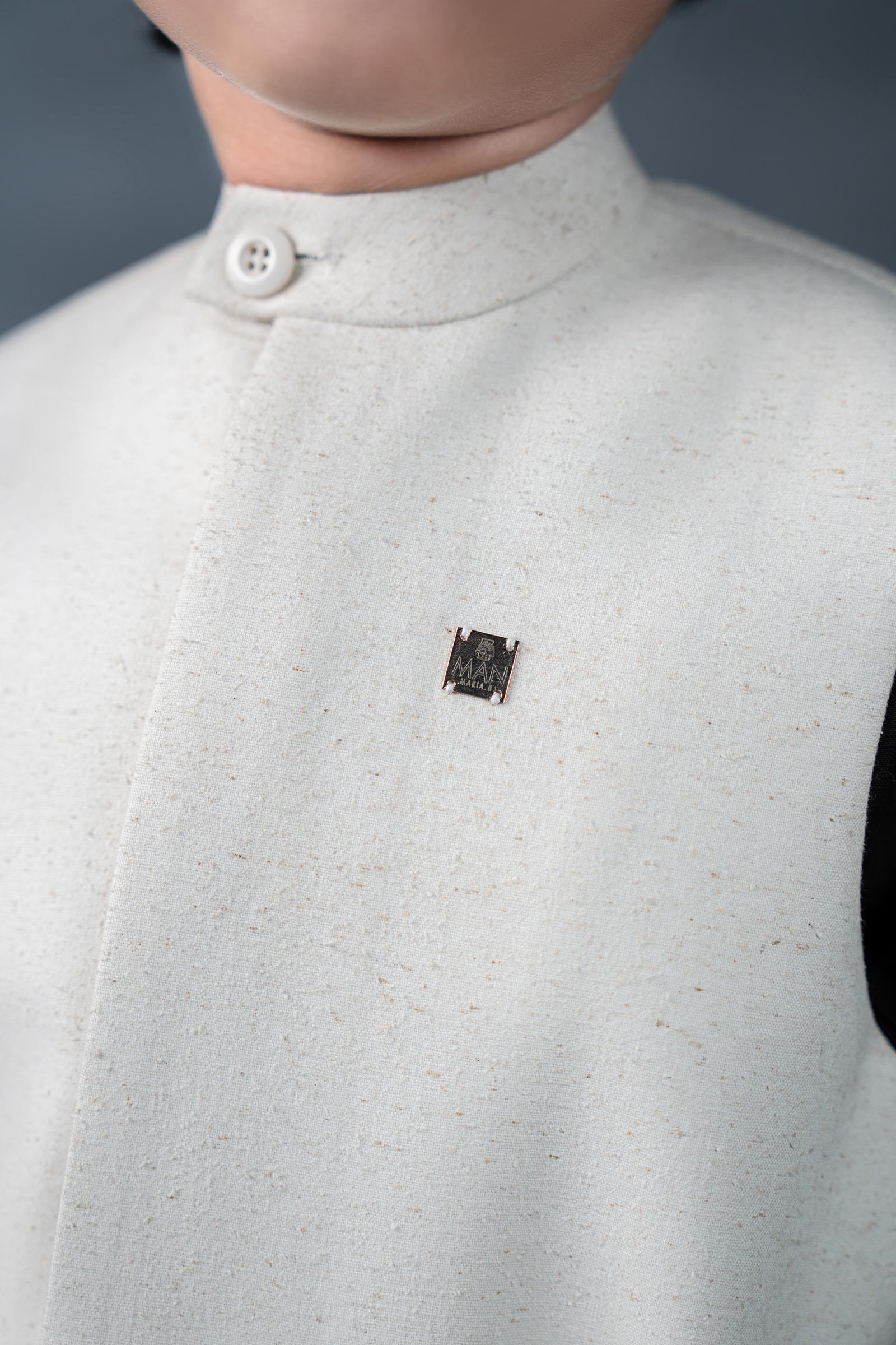 Round Band Collar Neck With Button Detailing Cover Placket 2 Front Round Patch Pockets Round Hem Silk Lining Color: Natural Fit: Regular Wear Type: Formal Fabric: Karandi Model is wearing medium size Note: Dry Clean Only