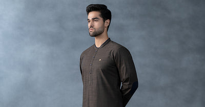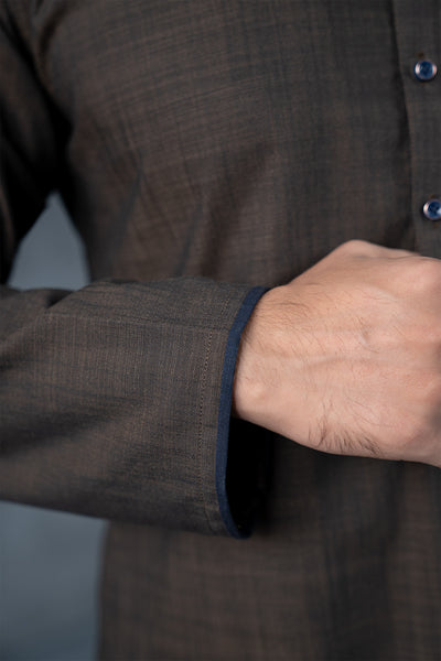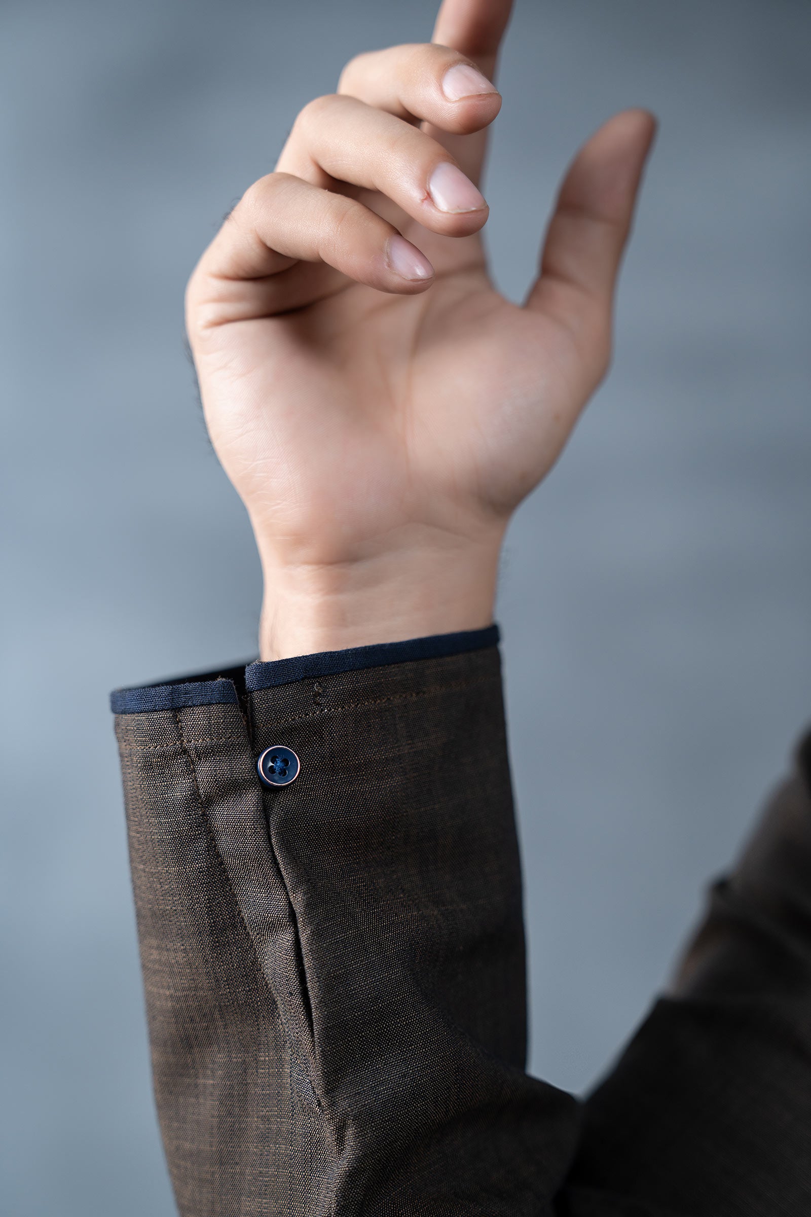 Band Collar Neck With Contrast Lining Detailing & Buttons