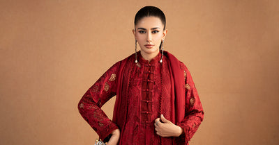 Full Sleeves With Pleated Organza, Lace & Loops Detailing