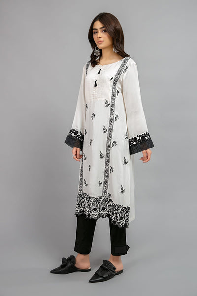 Shirt fabric : KotaileSraight kurta with all over embroidered front and pin pleated nec