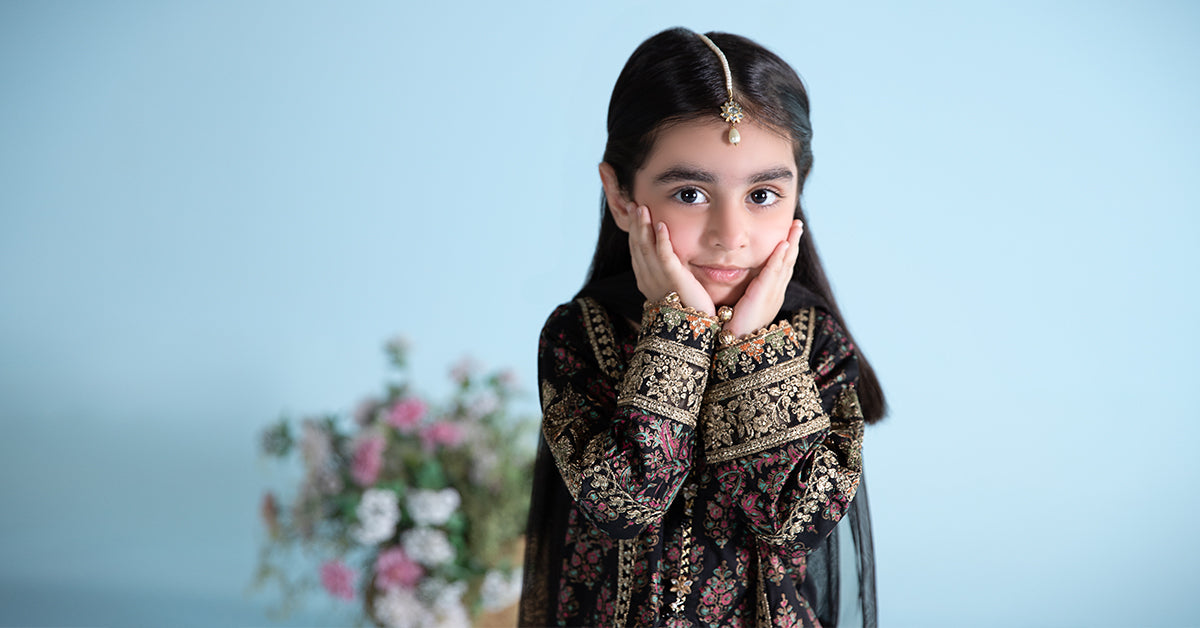 Classic Chand Embroidered Motif & Gotta Balls On Sleeves